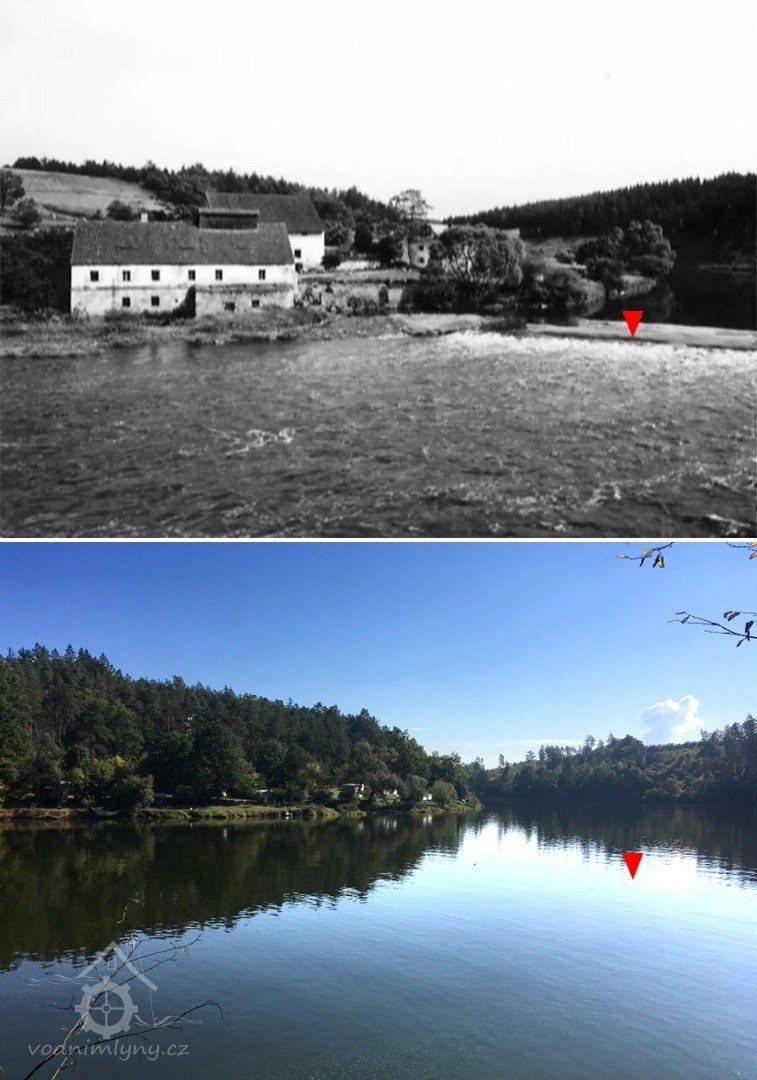Pohled na mlýn a mlýniště, 1935-2025, © Facebook
