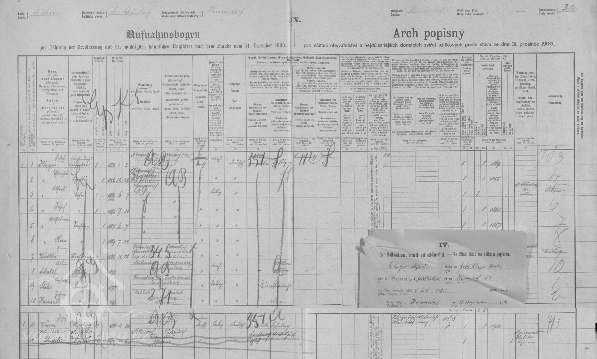 sčítací arch, 1900, © Digitální archiv Zemského archivu v Opavě