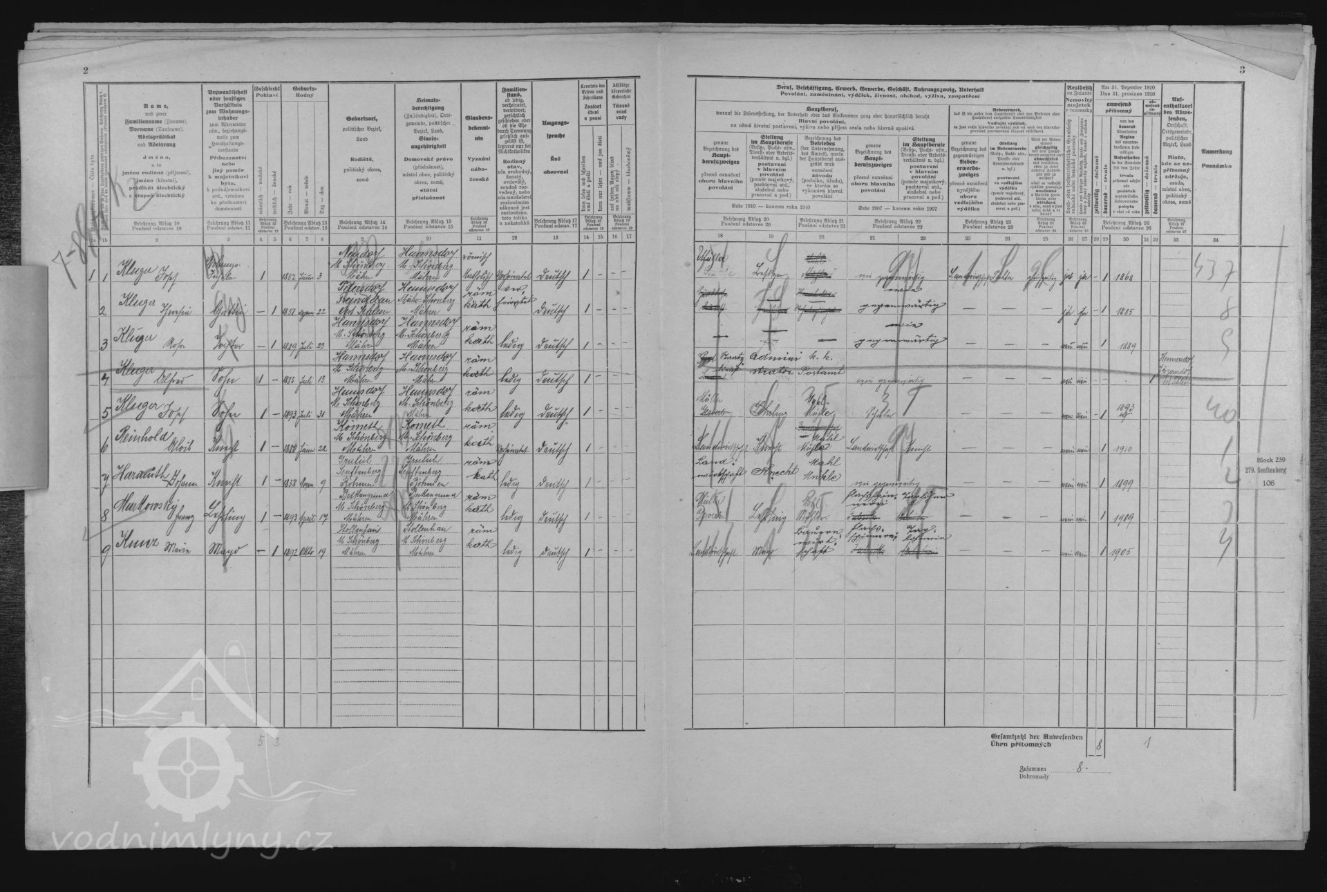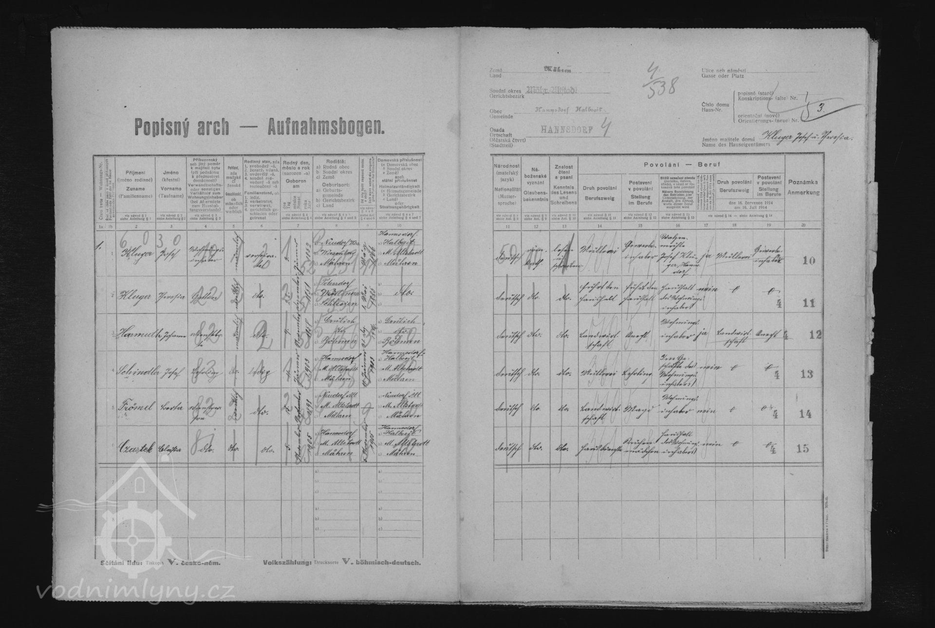 sčítací arch, 1910, © Digitální archiv Zemského archivu v Opavě