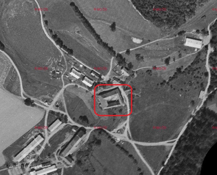 Letecký měřický snímek, výřez, 1958, © ags.cuzk.cz/archiv