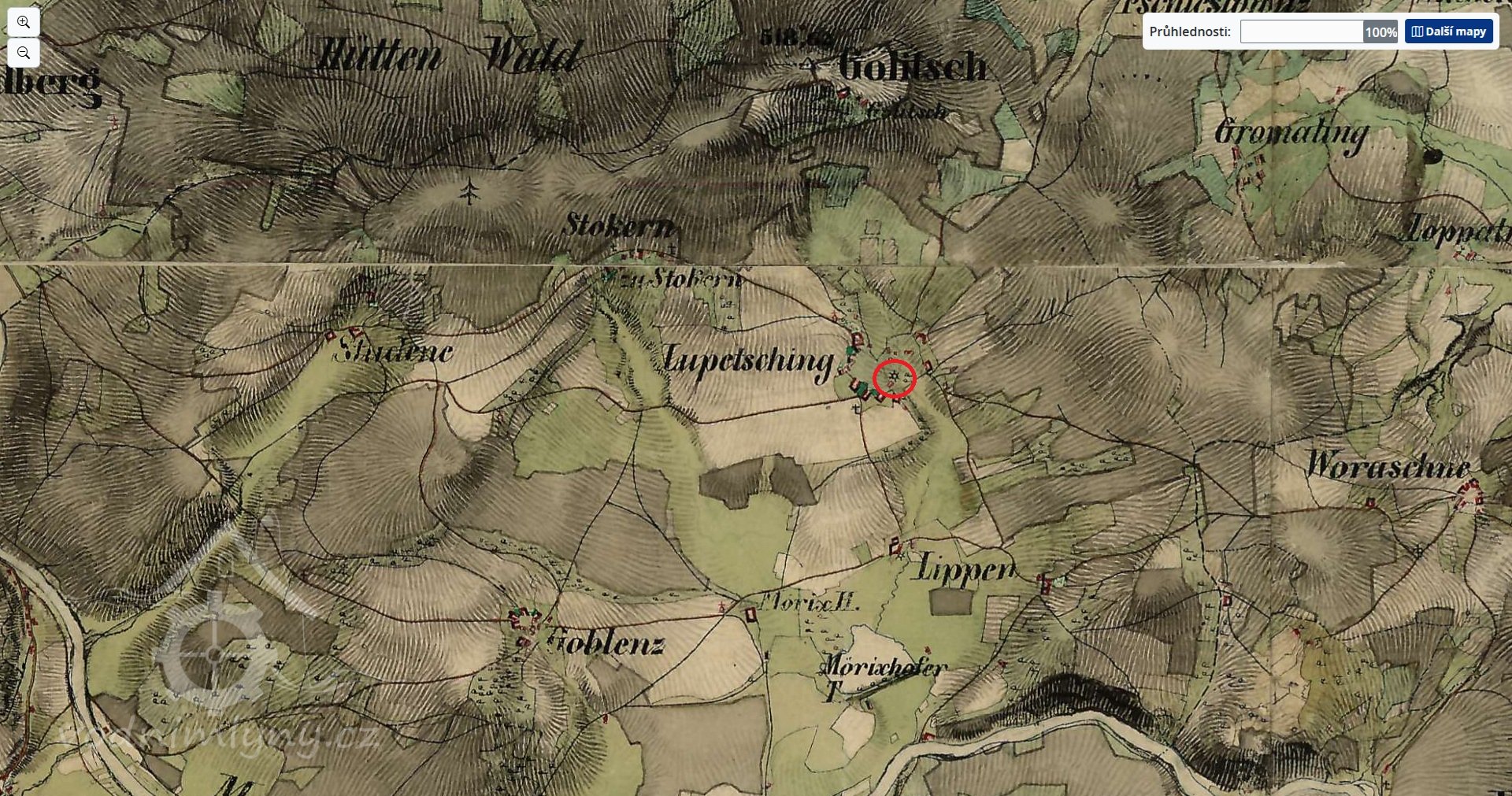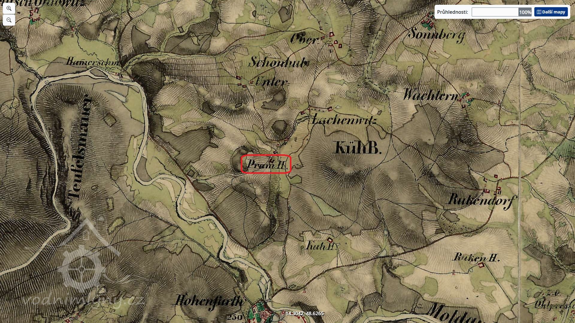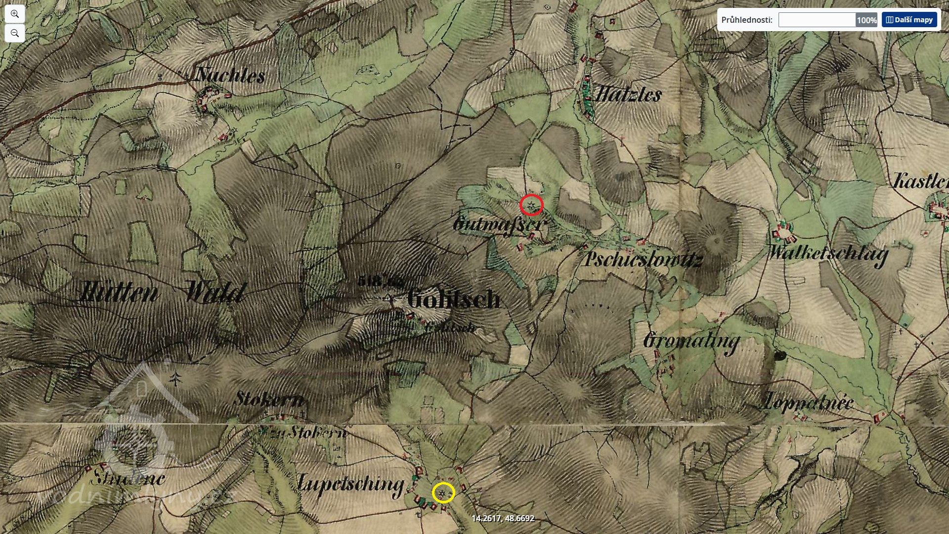 II. vojenské mapování, výřez, 1836-1852, © maps.arcanum.com