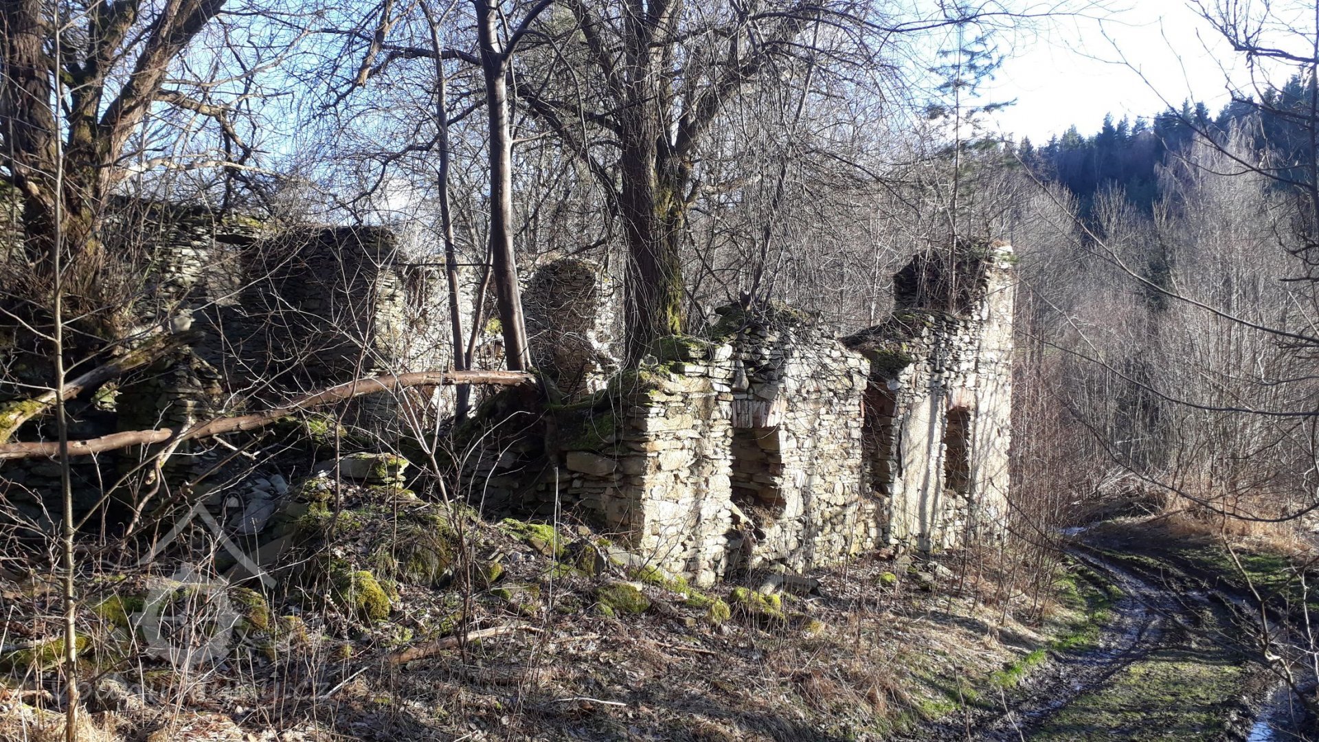 Cesta zříceninami sousední osady Březovice k mlýništi., 02 2023, © Roman Švéda