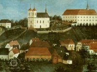 Pohled na Rožďalovice, olej - zcela vpravo dole mlýn (dřevěný), 1825, © Anonym