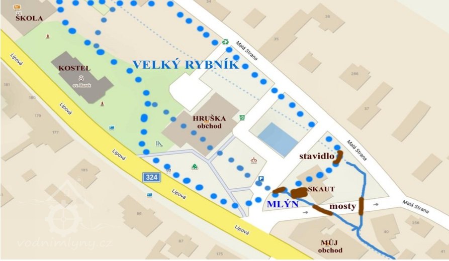 Schéma polohy rybníku a mlýna, 2025, © Otto Kučera