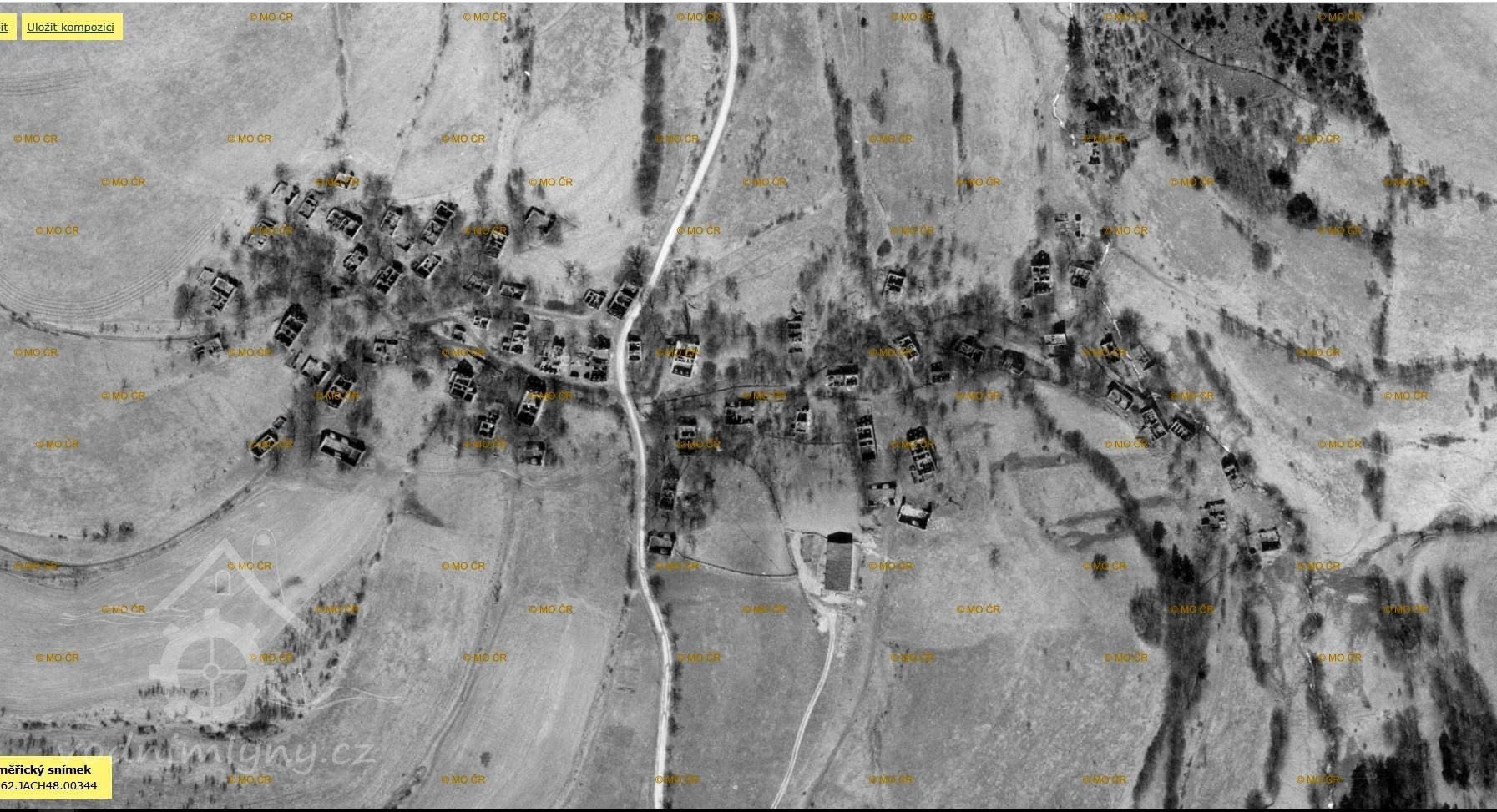 Letecký měřický snímek, výřez, 1950, © ags.cuzk.cz/archiv