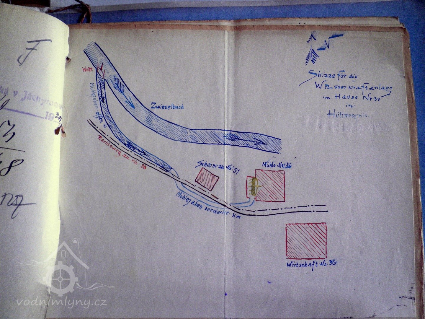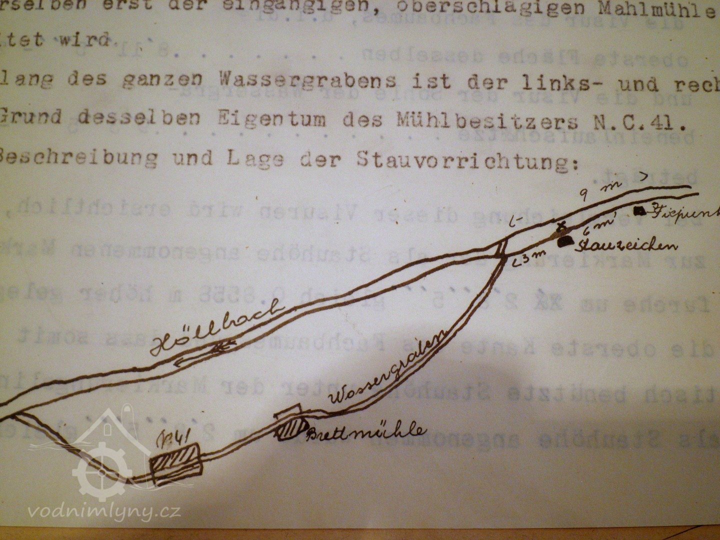 Nákres vodoprávní situace, 1879, © Vodní kniha