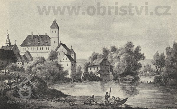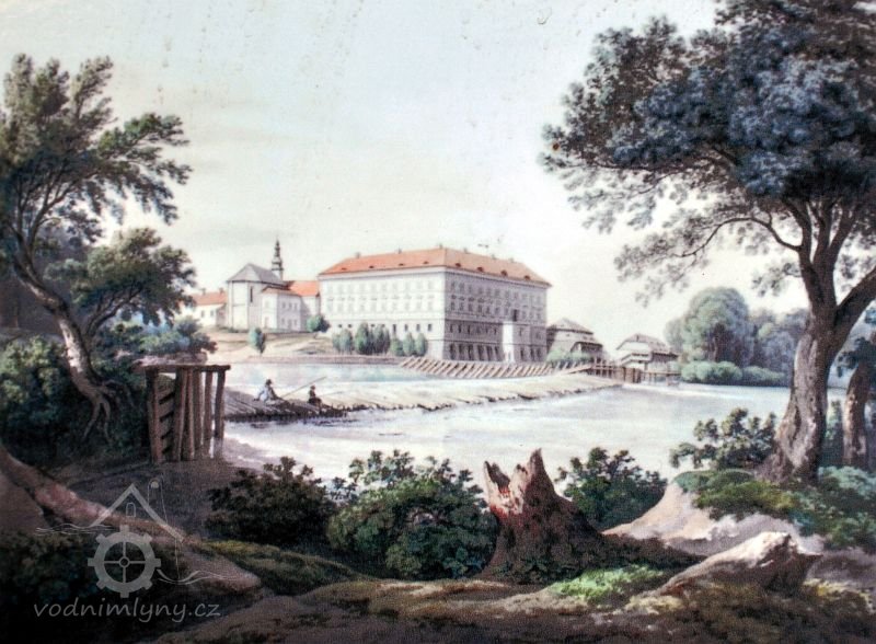Pohled na zámek a mlýn, 1844, © Karl Vilém Medau