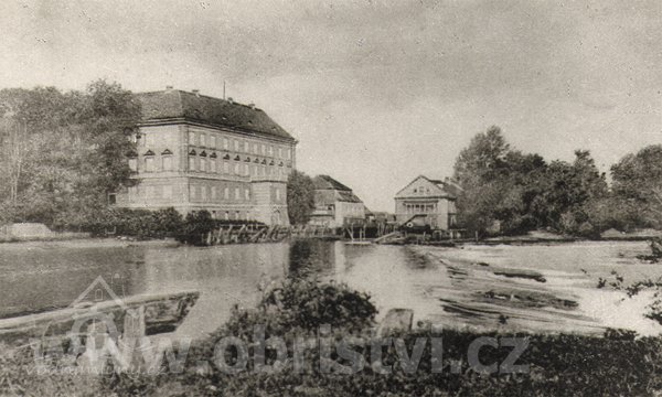 Mlýn a jez na Labi, 1902, © obec Obříství