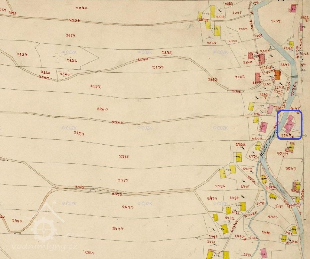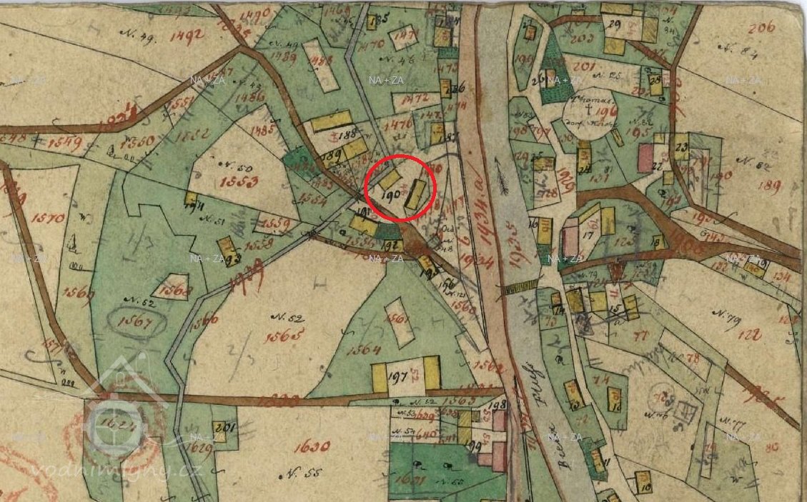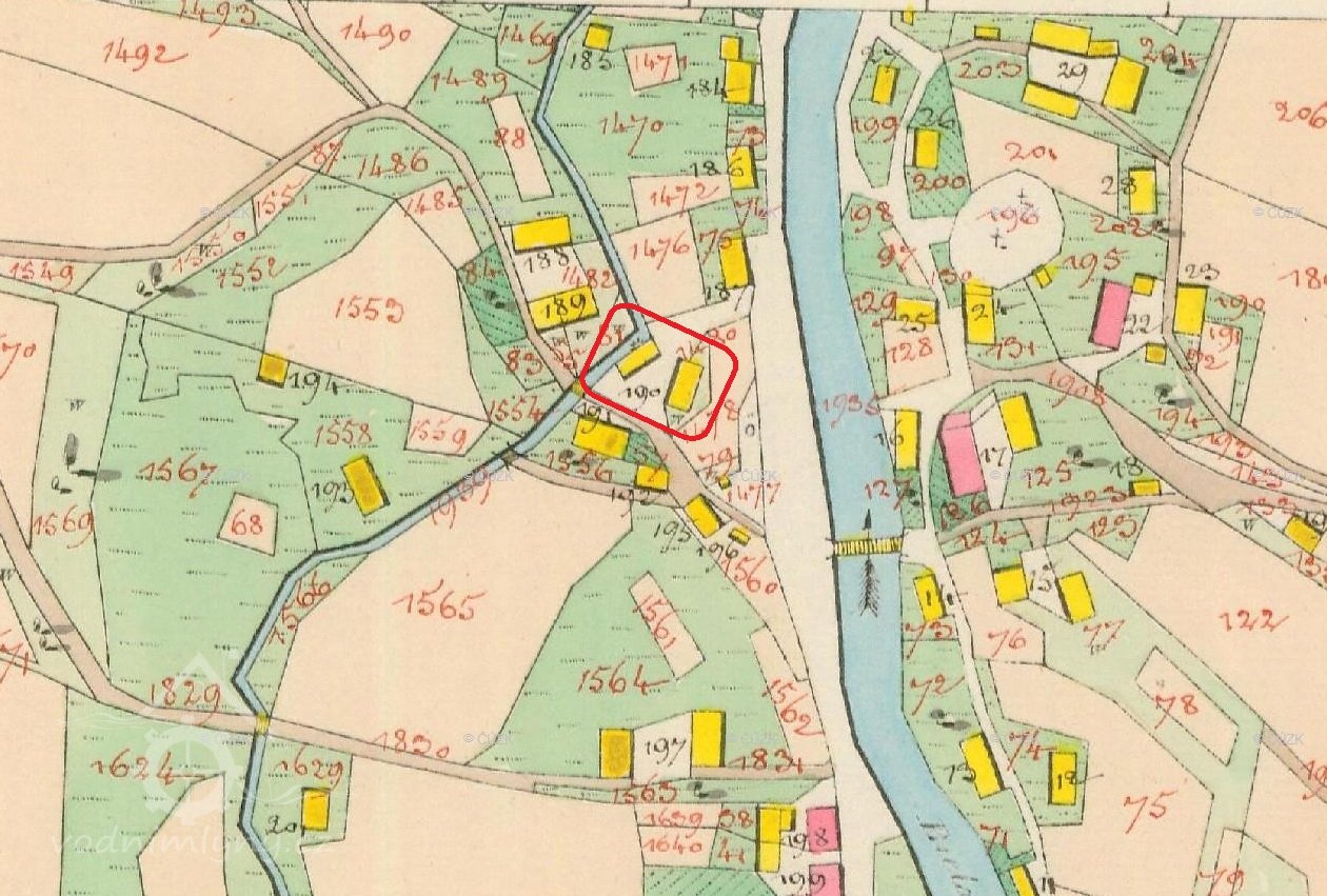 Katastrální mapa evidenční, výřez, 1875, © ags.cuzk.cz/archiv