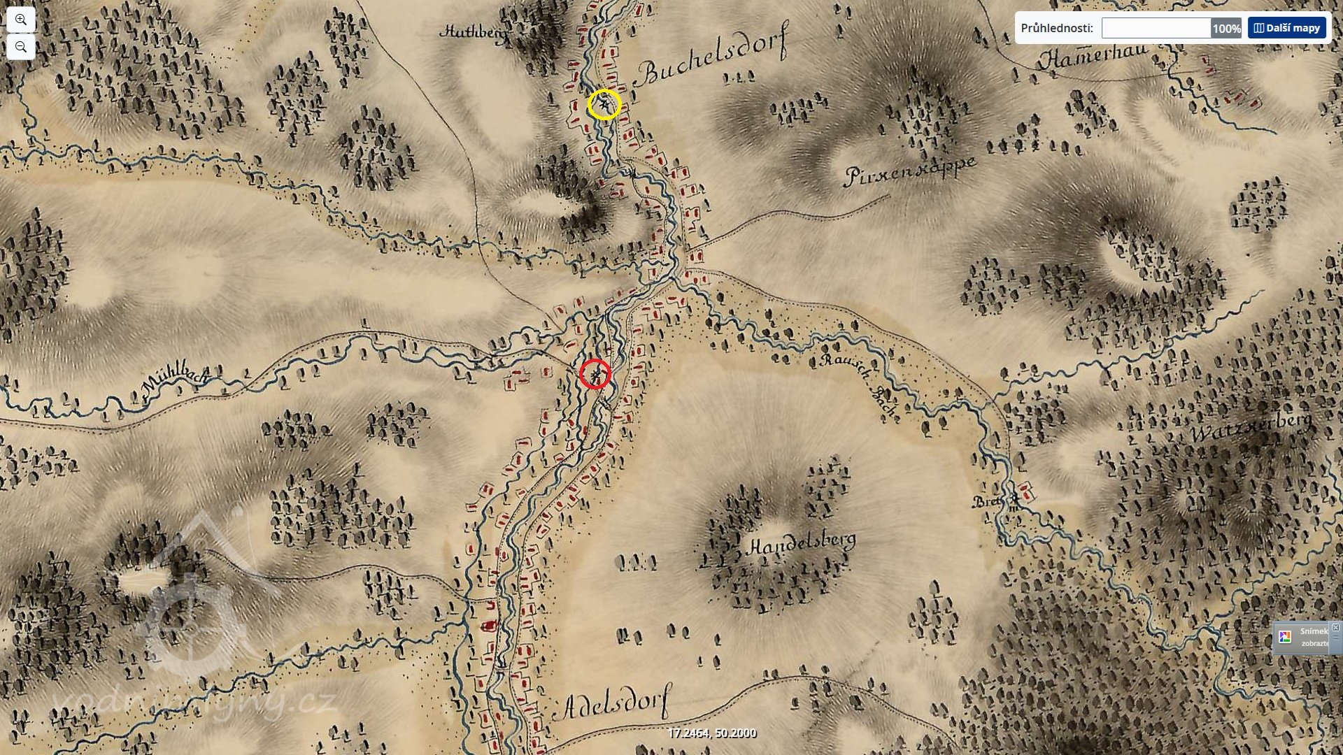Mapa vodních mlýnů