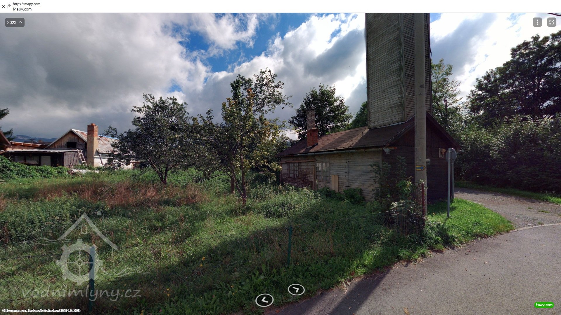 Pohled na býv. mlýn od východu, 08 2023, © mapy.cz