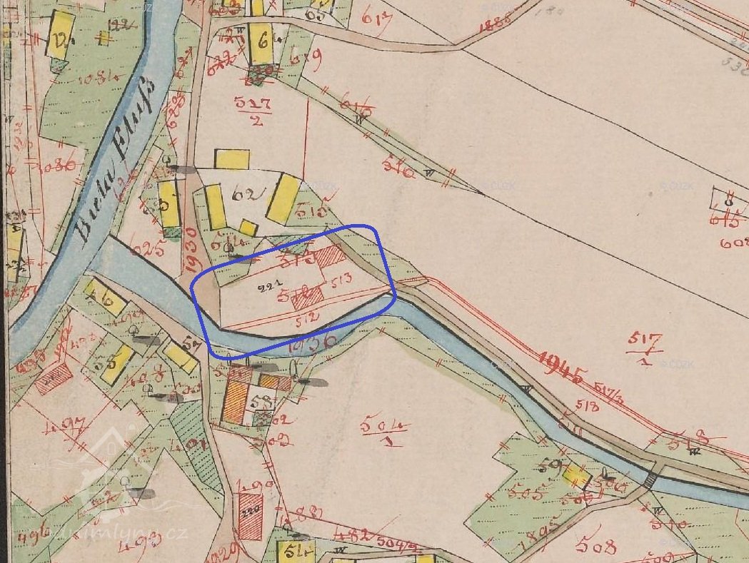 Katastrální mapa evidenční, výřez, 1912, © ags.cuzk.cz/archiv