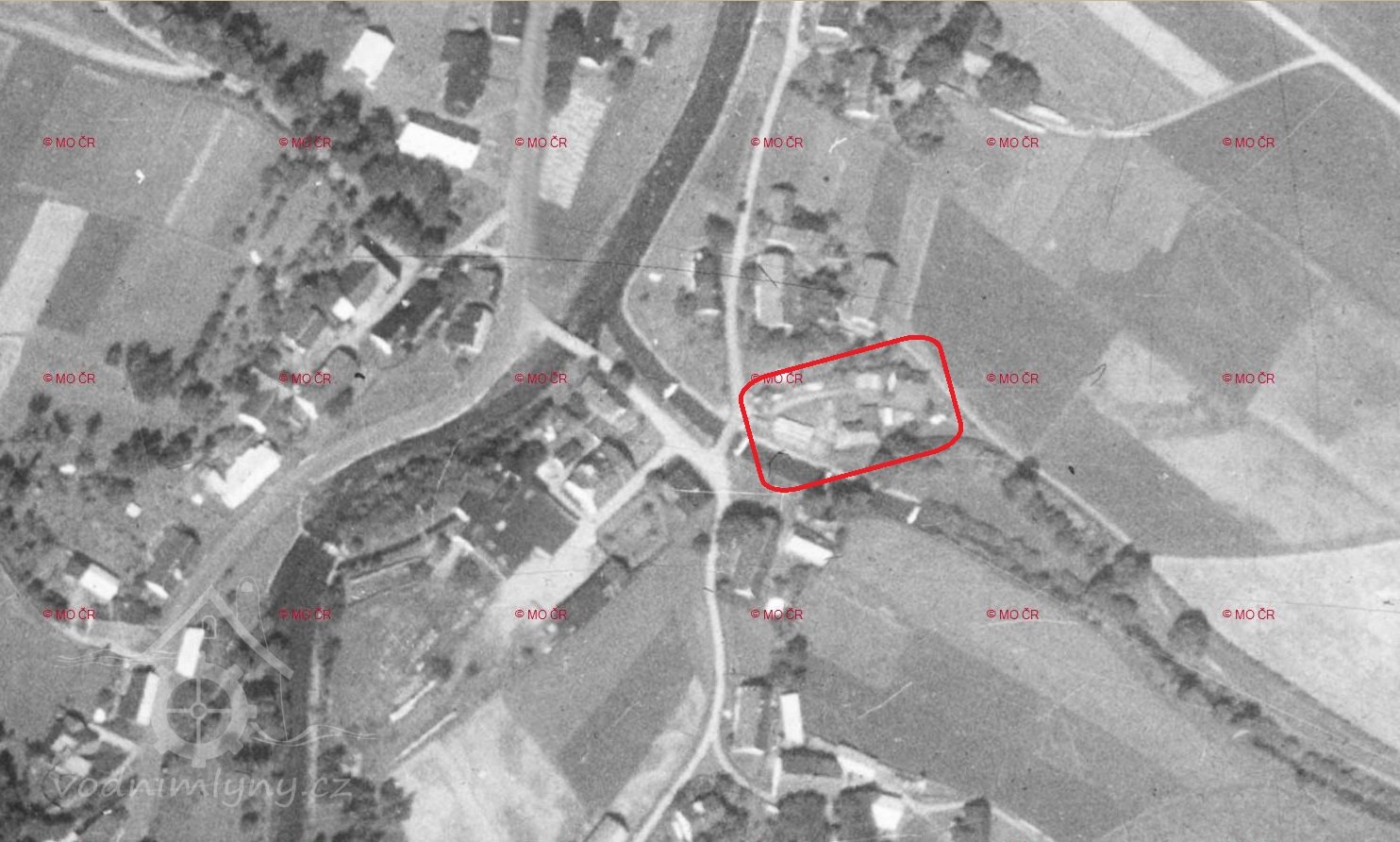 Letecký měřický snímek, výřez, 1953, © ags.cuzk.cz/archiv