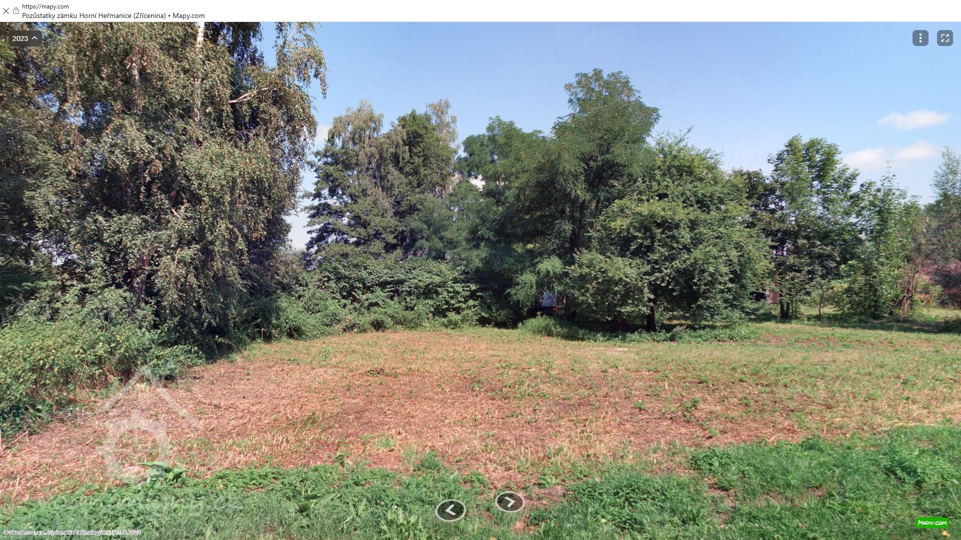 Zde stával mlýn - pohled od západu, 08 2023, © mapy.cz