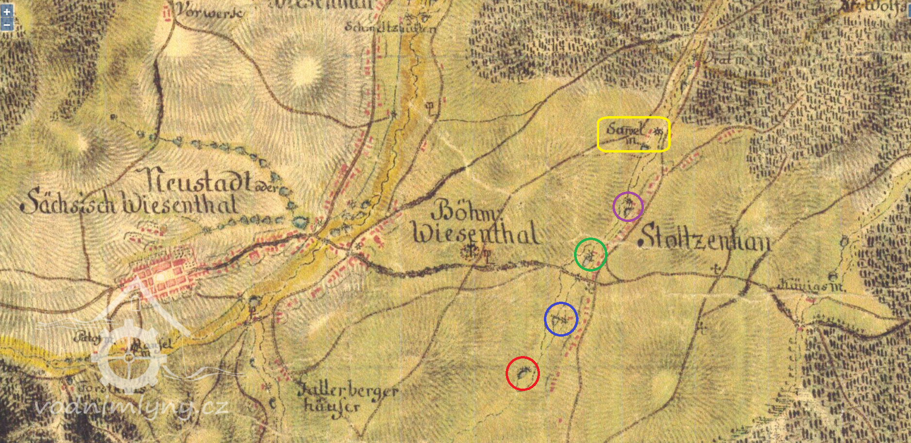 Mapa vodních mlýnů