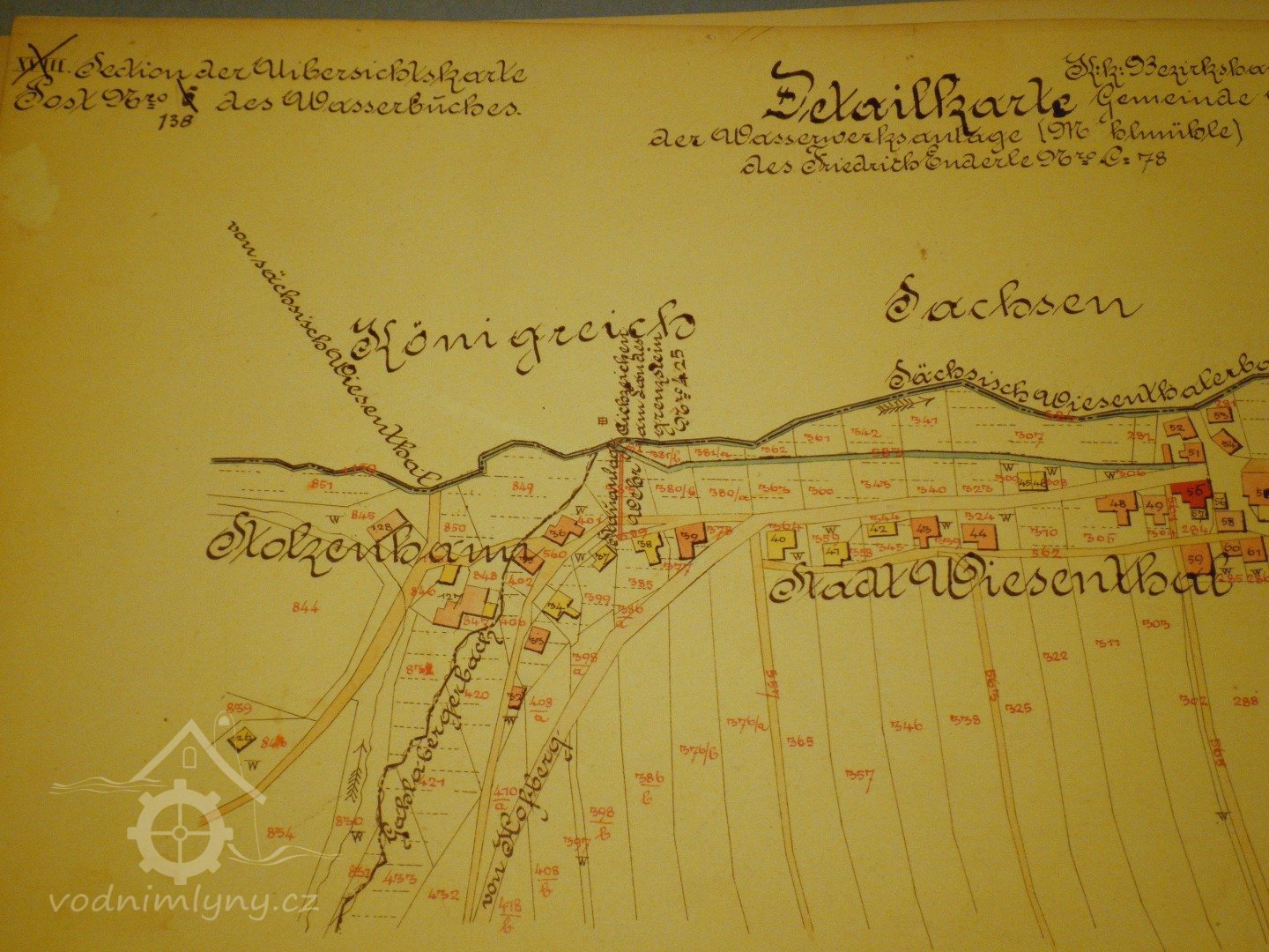 Nákres vodoprávní situace, 1878, © Vodní kniha