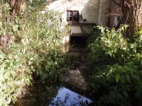 Počátek náhonu s jalovým odpadem, 2016, © doxa, (Prvky na obrázku: jalový žlab, stavidlo)