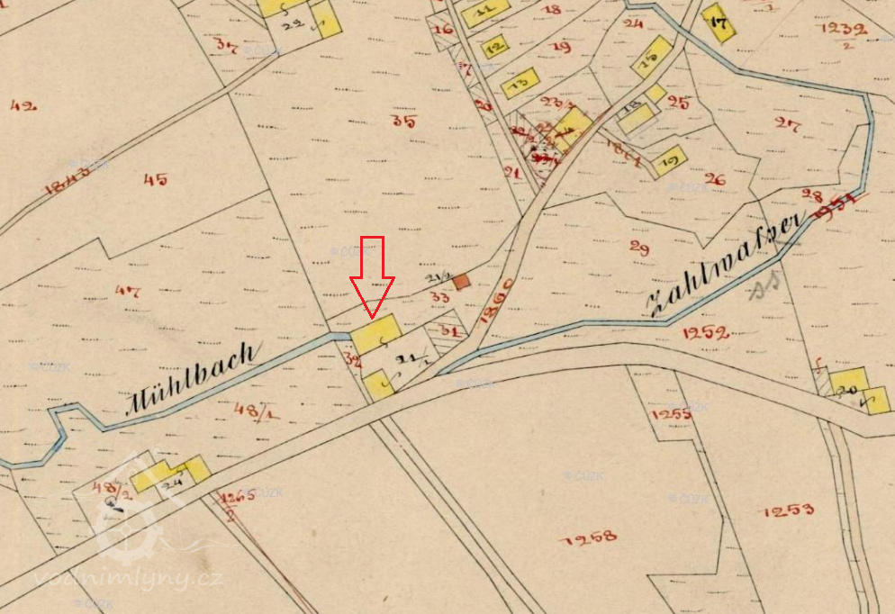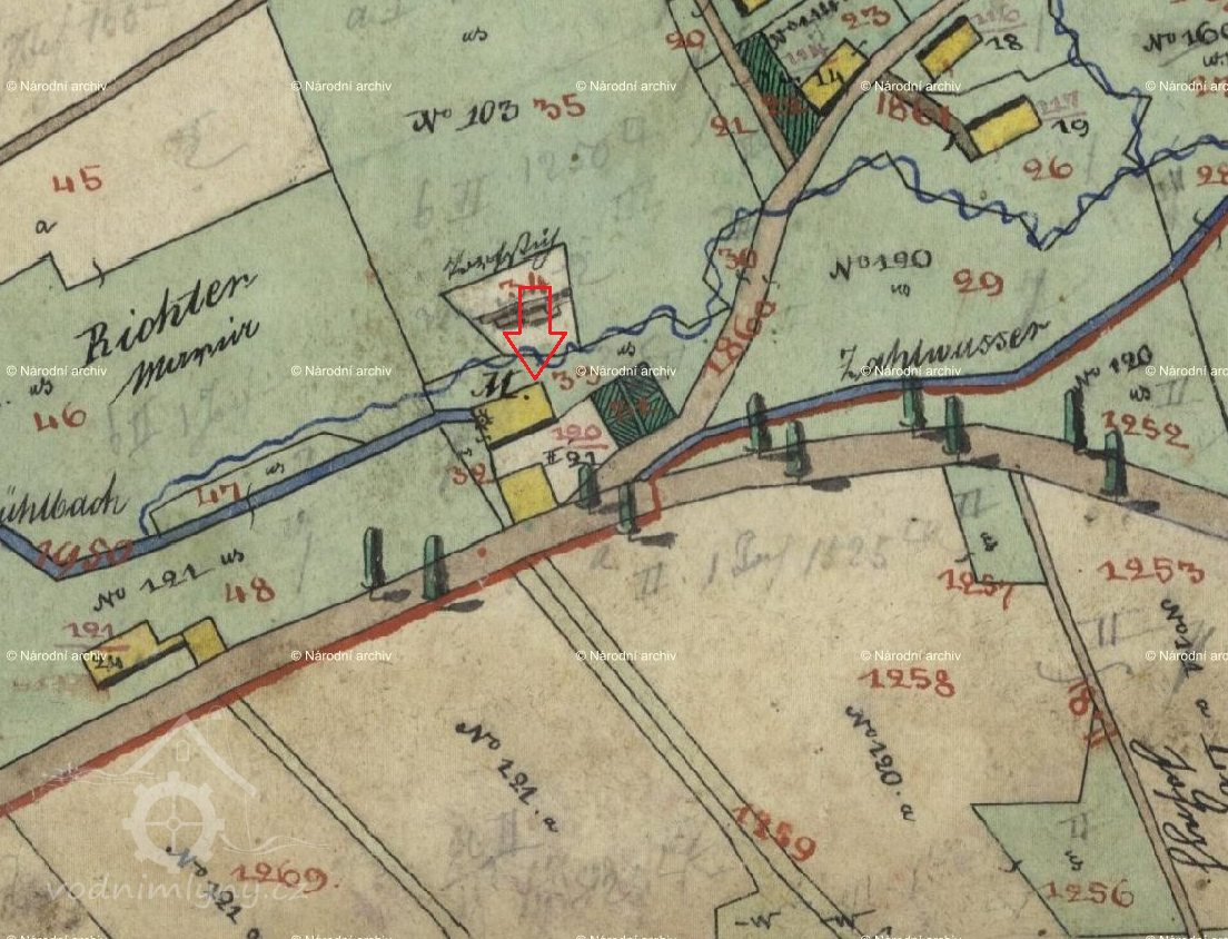 V roce 1842 provozoval mlýn Josef Liessner (psáno také Lissner), který se narodil v roce 1800 v rodině tkalce Franze Liessnera v obci Severní a zpočátku u něj byly uváděny 2 živnosti – mlynář a tkadlec. Oženil se s Theresií Maaz, která pocházela rovněž z rodiny tkalce. Soupis poddaných z roku 1846 uvádí v čp. 120 tento mlynářský pár se 6 dětmi: Josefem (1830), Franzem (1831), Ambrosem (1834), Theresií (1837), Laurenzií (1840) a Marií (1843).