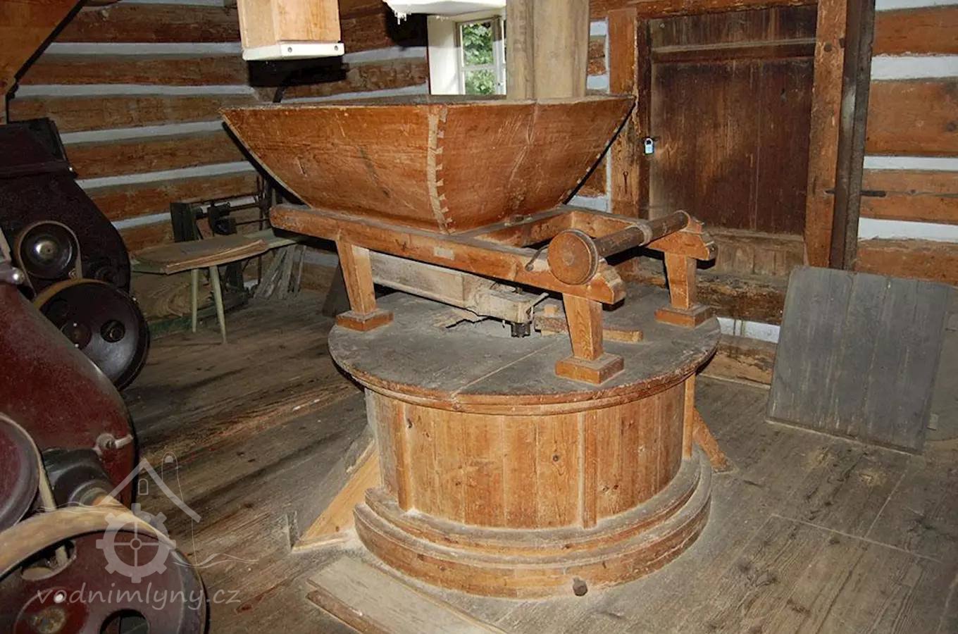 Od turbíny šel řemen na dynamo a na spodní transmisi, která dále za pomoci plochých kožených řemenů roztáčela transmise, ty potom jednotlivé stroje v několika patrech. Transmise jsou rozvedeny i pravoúhle pomocí malých palečných převodů. Je zde i pomocný motor. Na první mlecí podlaze bychom nelezli dvě novější mlecí stolice od fa Prokop Pardubice, dále předlohovou transmisi, malý hranolový vysévač, původní kamenné mlecí francouzké složení a již nenainstalovanou novou loupačku. O patro výše pak velmi zajímavý stroj na čistění a třídění krupice - štosku s předtříděním dlouhým žejbrem a jemnějším tříděním pomocí dvou skupin dvou až tří malých komor, pracujících jako vícevětrové taráry. Je zde také velký moučný hranolový vysévač na třídění rozemletých produktů, transmise a pytlovací lávka. Ve vyšších patrech jsou umístěny další hranolové vysévače, stará průchodová loupačka, novější reforma, čistící vysévač s tarárem, větrová komora, filtr, trieur a transmise. Všemi patry prochází několik kapsových výtahů a dvě velké šnekové vertikální míchačky na mouku. Raritou je zde i pohon mlýnku na mák a míchačky na těsto.