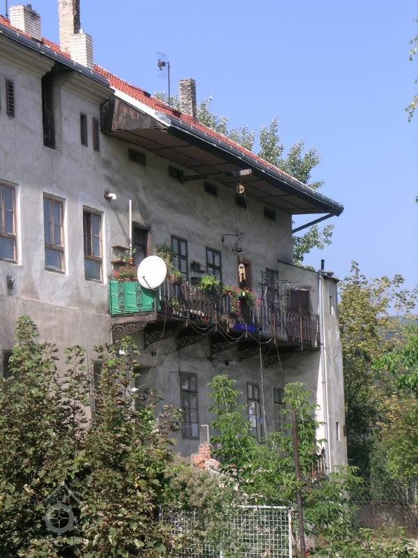 Do patrové budovy vedou v přízemí a patře stejná čtyřkřídlá dvojitá dřevěná okna. Spodní křídla jsou rozdělena na tři části. Na pravé straně od dveří vedou do pavla­če vždy čtyři, na levé straně v přízemí tři a v patře rovněž čtyři okna. Nad pavla­čí střecha výrazně přesahuje průčelí. V levé části je průčelí u střechy zakončeno hlavní římsou. V pravé části je spodní stěna předsazené střechy pobita prkny. Pod římsou jde do půdy osm úzkých vysokých otvorů s předsazenými žaluziemi. V pravé třetině této části vede do půdy dveřní otvor. Pod předsazenou střechou nad pavla­čí je do půdy pět nízkých širokých otvorů rovněž se žaluzií. U terénu je na fasádě několik dveří do půdních prostorů.