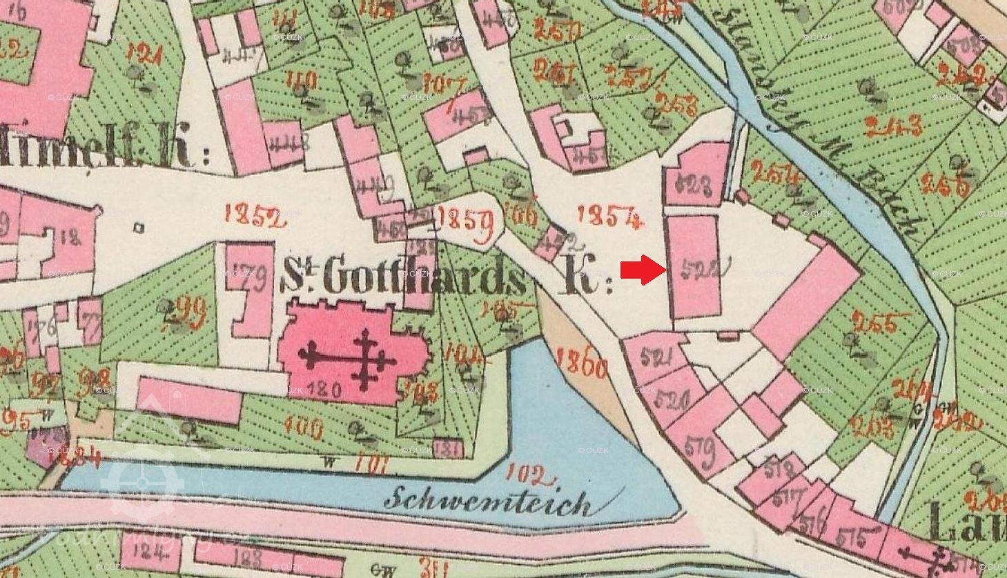 poblíž centra města u rybníka Brod nedaleko kostela sv. Gotharda