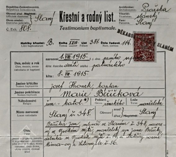 V roce 1915 na mlýně působil mj. mlynář Jan Bečička, kterému se zde 1.8.1915 narodila dcera Marie.