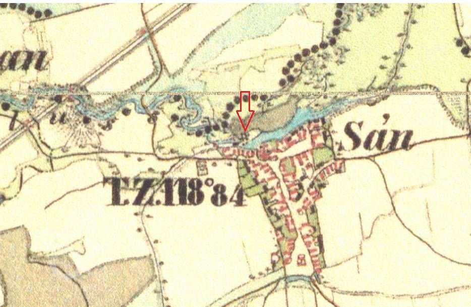 V roce 1474 založil Hynek, kníže Műnsterberský (syn Jiřího z Poděbrad) jihozápadně od Sán rybník Bačov 996 ha. V té době byl založen čtvrt míle dlouhý nový náhon Bačovský. K Sánům tekl podle řeky Cidliny, oddělen byl břehy až ke mlýnu zvanému Povodník, který také vznikl v této době. Náhon především dodával vodu rybníku Bačovskému.