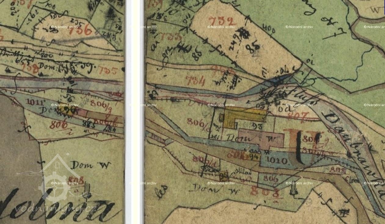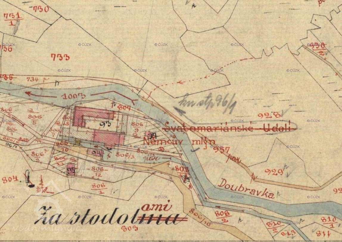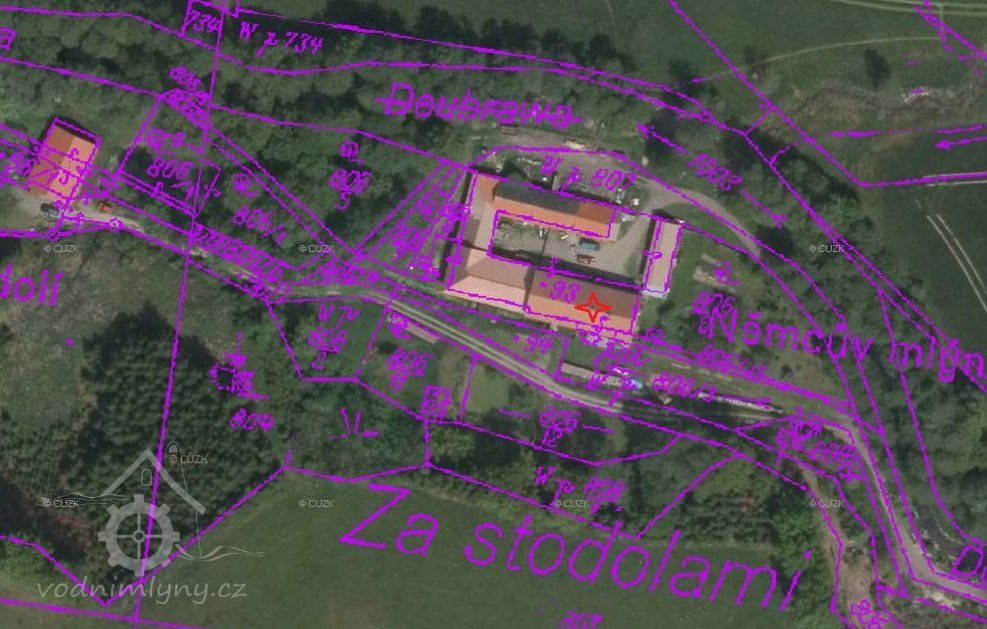 Na mapě II. vojenského mapování je značka pro vodní dílo vyobrazena u budovy čp. 85, která se nachází asi 120 m západně od Němcova mlýna čp. 83. To by odpovídalo údaji uvedenému v obecní kronice, dle kterého byl původně Němcův mlýn v budově čp. 85.