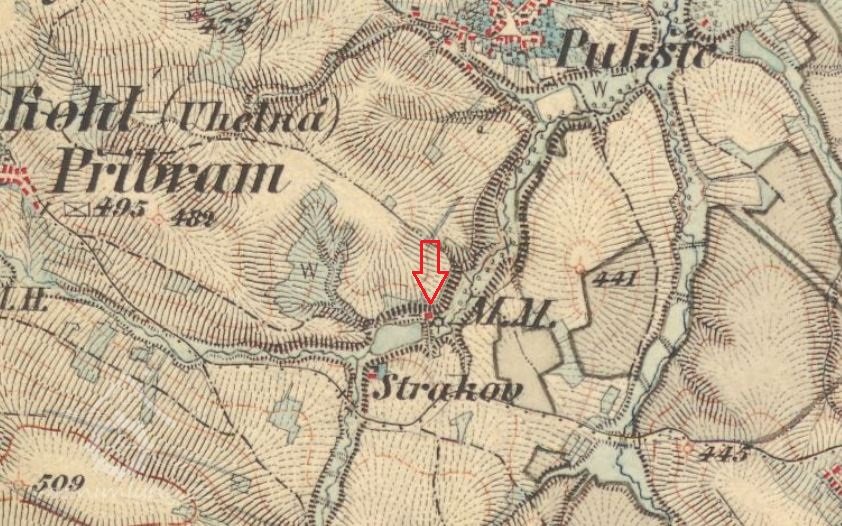 V roce 1896 je mlýn uváděn u obce Uhelná Příbram pod názvem samota Strakov, mlýn.