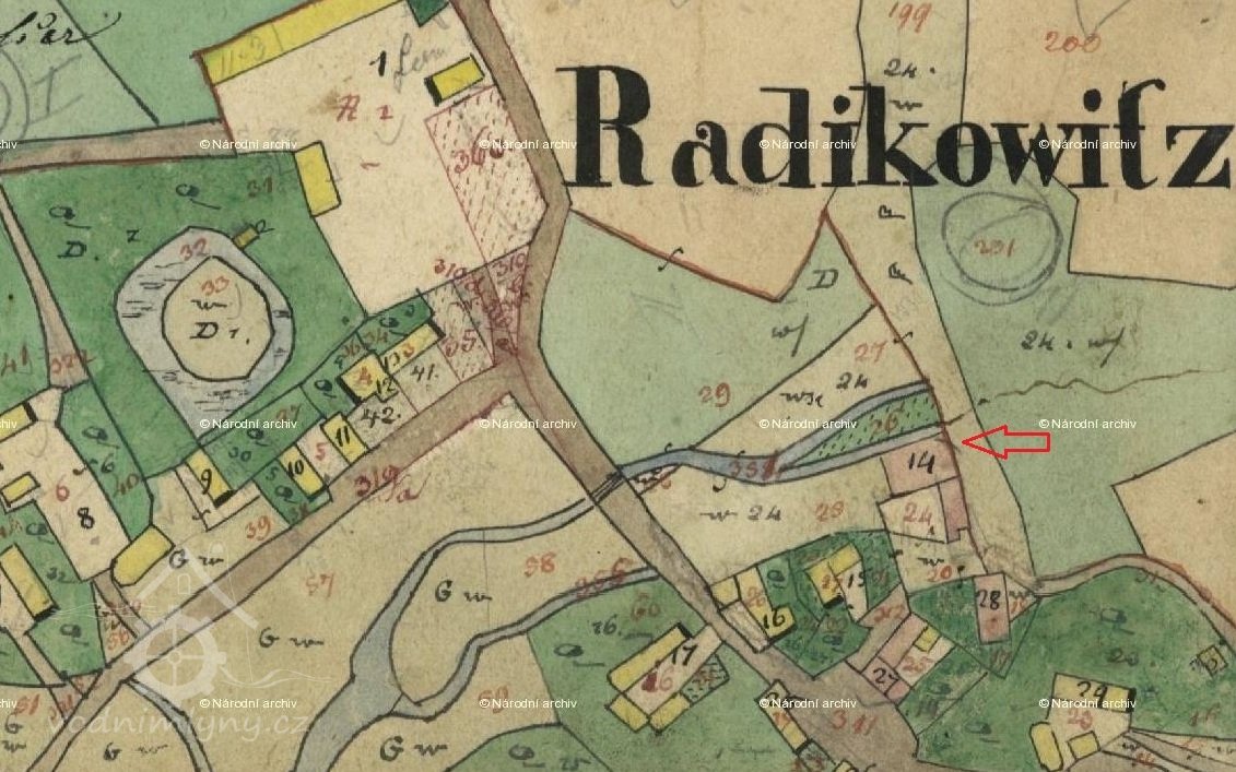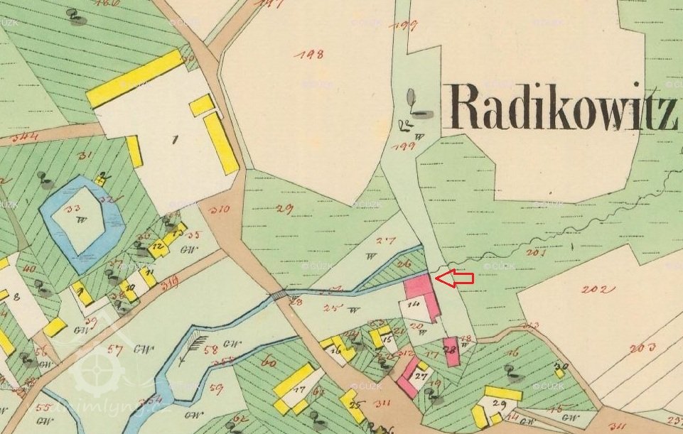 V berní ruce z roku 1654 je uveden v Radíkovicách uveden panský mlýn o jednom kole, u kterého byly 2 korce rolí a sklízela se tu jedna fůra sena a 1/2 fůry otavy.