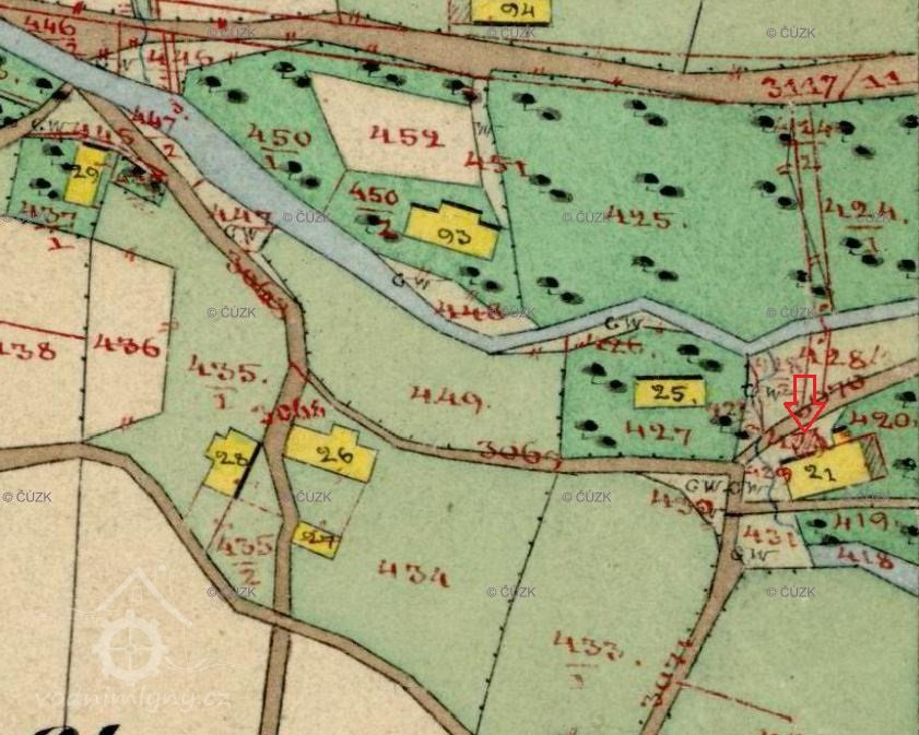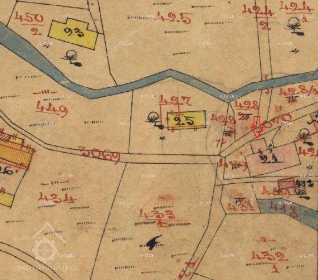 Neexistuje. Na pozemku č. 21 byla postavena nová obytná budova, která stojí částečně na základech bývalé mlýnské budovy. V terénu se dochovaly stopy po náhonu i odtokovém kanálu a zbytky rybníka.