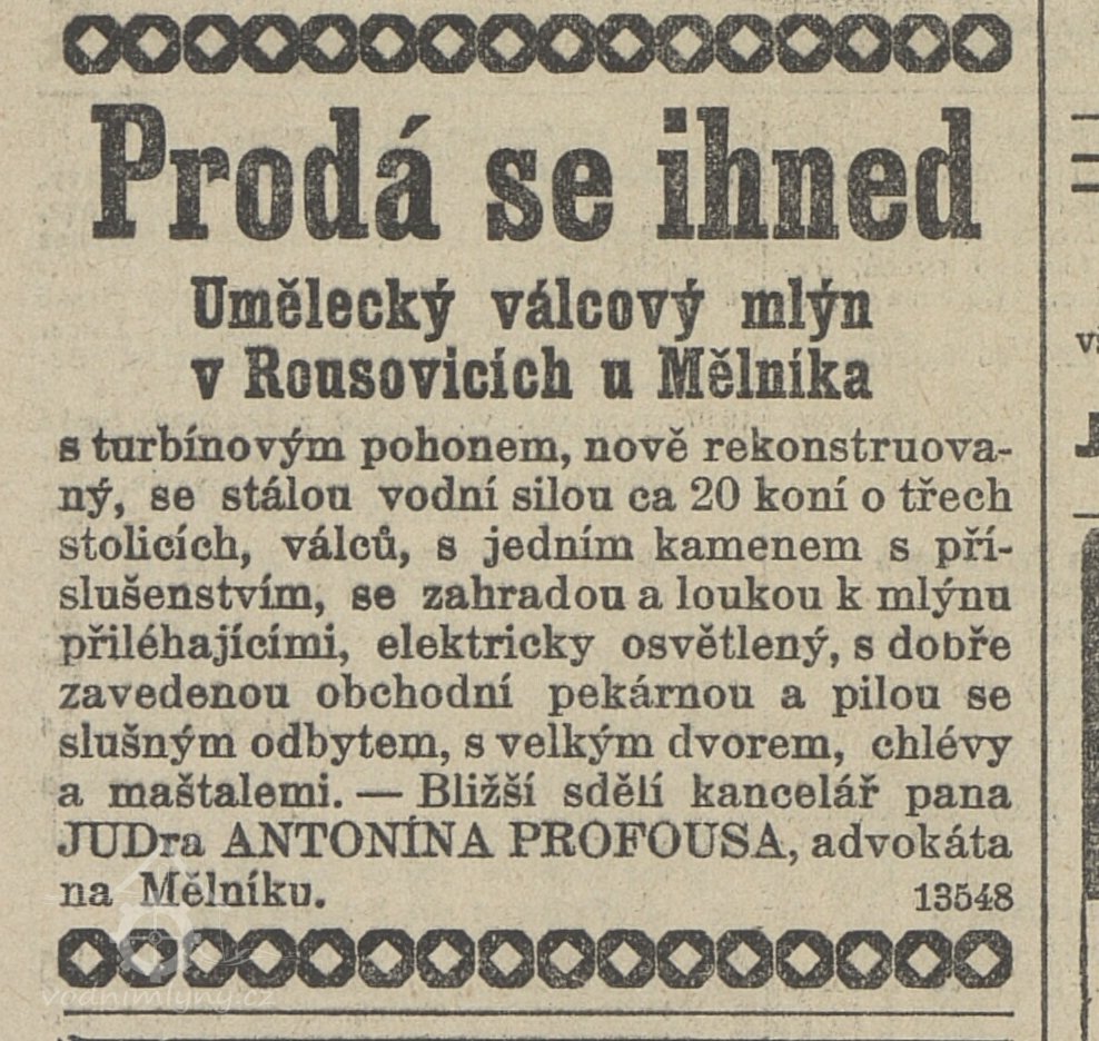Jak je ale zřejmé z matriky narozených 10491 sign. 58 matrika NOZ 1700-1764 ukn 10491 ze snímku 14, působil ve mlejně Rousínov mlynář Jan Králík s manželkou Dorotou již roku 1702. Později se ve mlýně objevili nejpozději v roce 1728 František Lankaš, a v roce 1732 Václav Lankaš, který zde působil dle narozených dětí delší dobu, v roce 1752 je zmíněno narození dítěte ve mlýně Janovi Lankašovi a v roce 1762 Matějovi. Bohužel, přímo jako mlynář žádný z Lankašů jmenován u narození dětí není, vždy jen jako z mlýna Rousínov. Lankašové, přímo jmenovaní povoláním mlynáři však v okolí působili, v Golčově Jeníkově například František v roce 1755, i když netuším, v jakém mlýně. Možná by se našli i z Rousínova, jako kmotři dětí v okolí, hledat se mi to však přímo nechce. (Jiří Vlk)