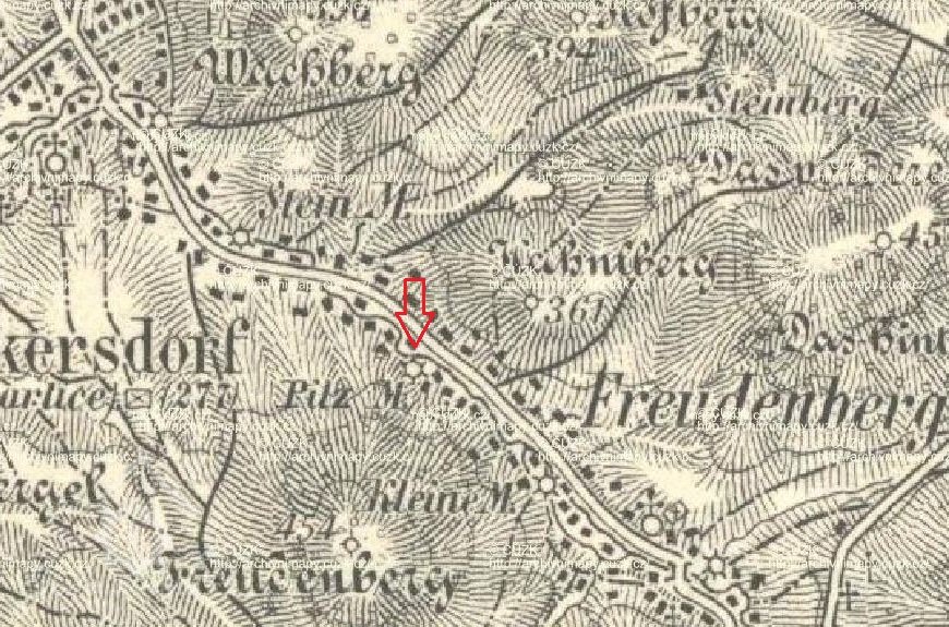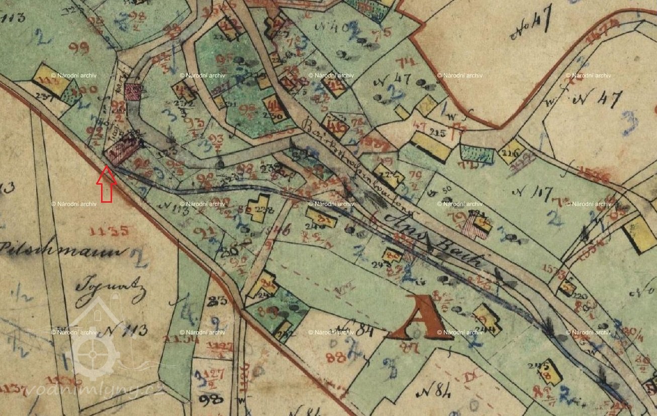 Na III. vojenském mapován je mlýn uveden pod názvem Pilz Mühle.