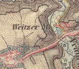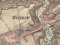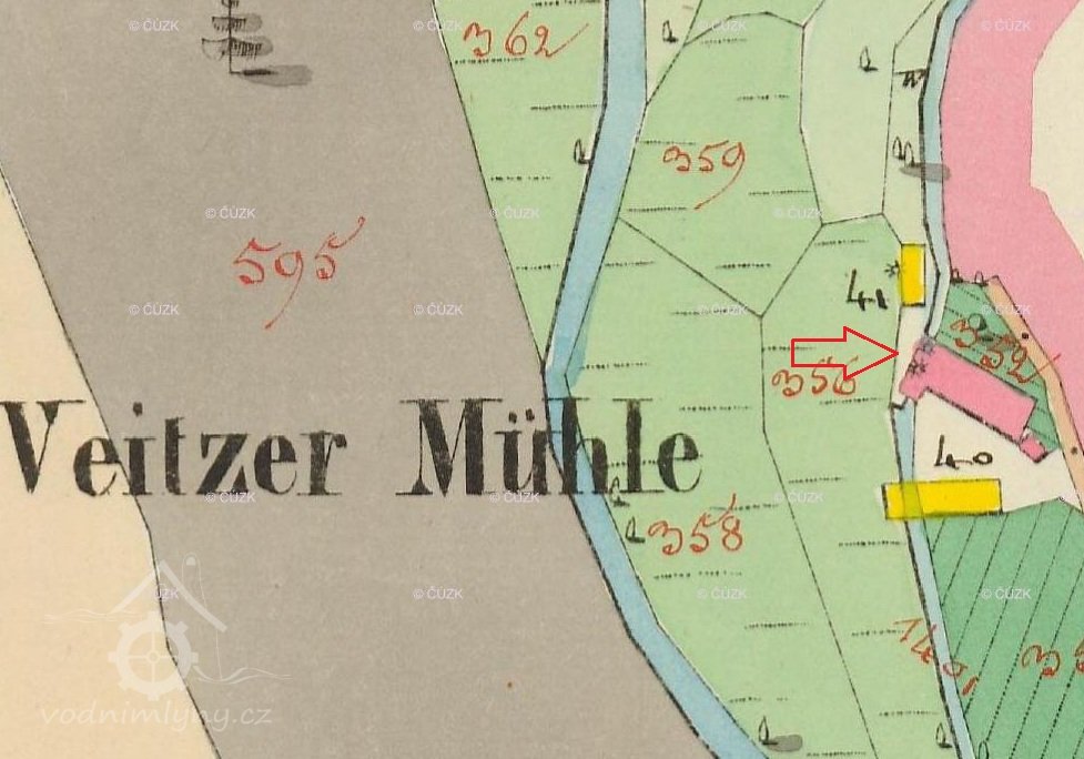 V roce 1804 je na vrchnostenském mlýně Weitsmühle zmiňován nájemce Josef Schneider. Mlýn měl 2 složení a 1 pilu. Mlynář platil vrchnosti nájem 7 zlatých ze mlýna a 1 zlatý z pily. Navíc měl povinnost vrchnosti pořezat bezplatně 10 kmenů na prkna.