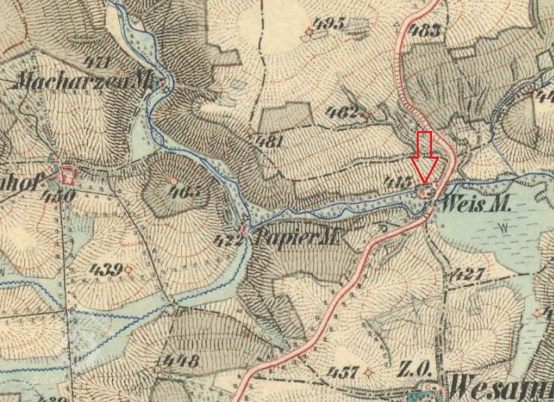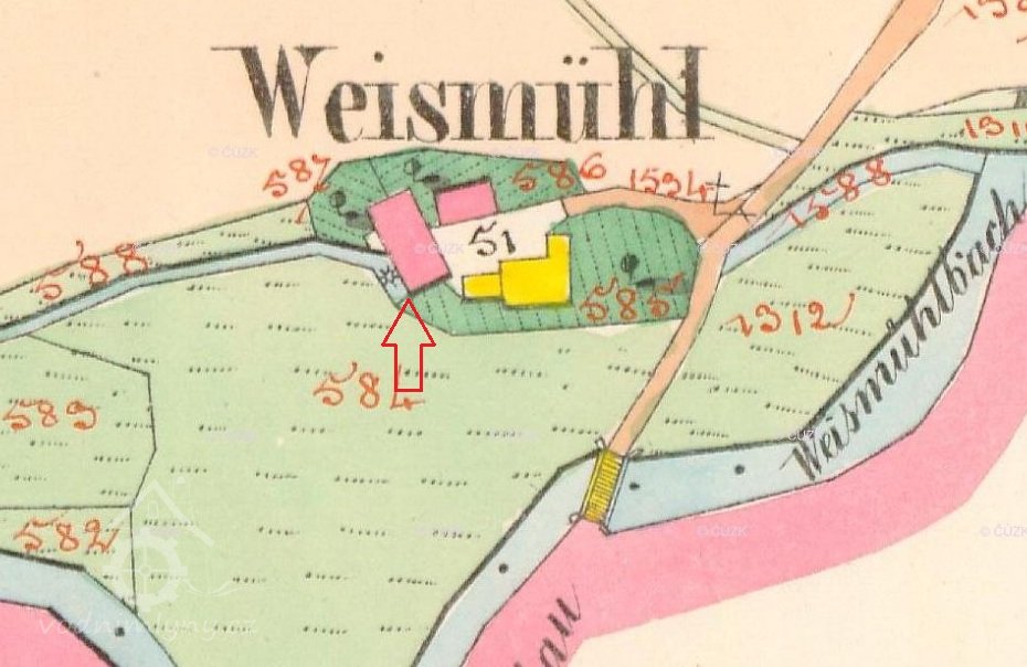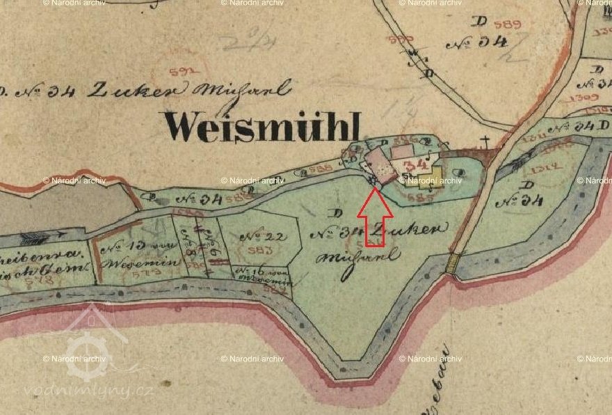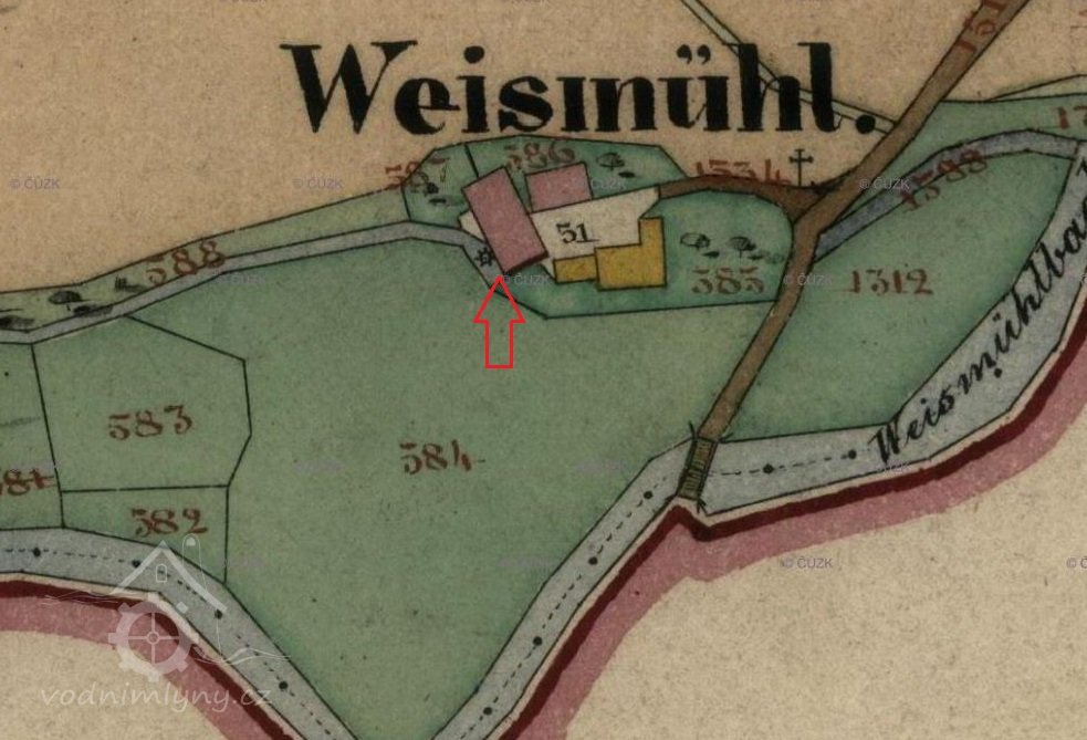 V roce 1804 zde hospodařil na emfyteutických pozemcích Michl Zucker, mlýn měl 2 moučná složení a ležel na nestálé vodě. Mlynář platilo vrchnosti ročně 9 zlatých 36 krejcarů a 1 strych pšenice. Stabilní katastr uvádí v roce 1839 Michaela Zuckera, patrně se jedná o stejného mlynáře jako v roce 1804.