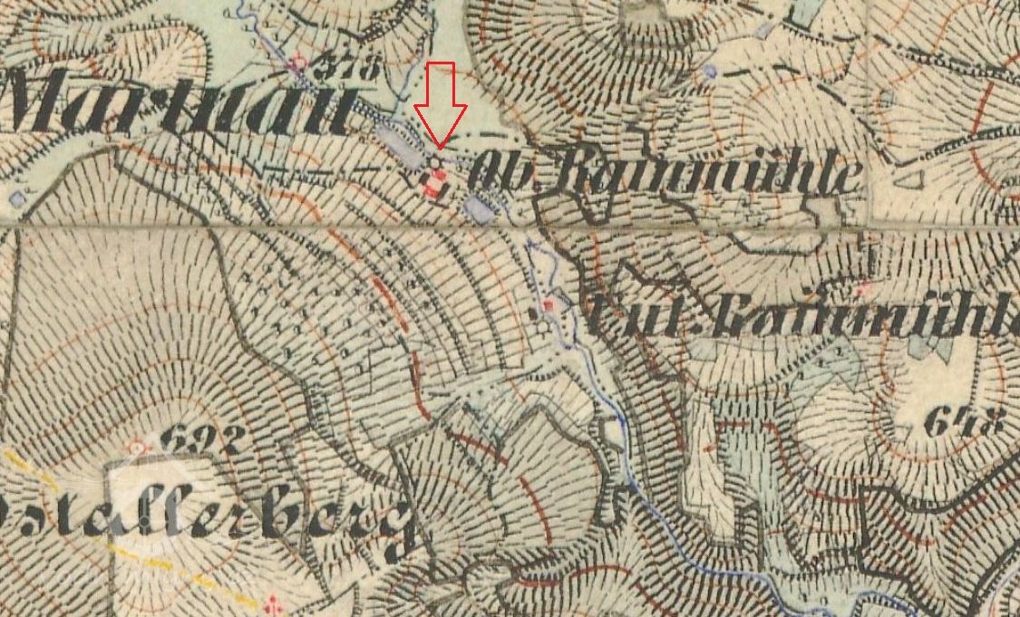 Schweinitzerové postavili kolem roku 1750 asi 300 m níže po proudu další vodní dílo s čp. 19, založené původně jako pila, později v 19. století využívané také jako obilní mlýn. Pro rozlišení se mlýn čp. 18 začal nazývat „Obere“ nebo také „Grosse Rainmühle“, zatímco mlýn čp. 19 dostal název „Untere“ nebo „Kleine“ Rainmühle. Původně byl mlýn čp. 18 dřevěný, na zděný byl přestavěn někdy kolem roku 1800.