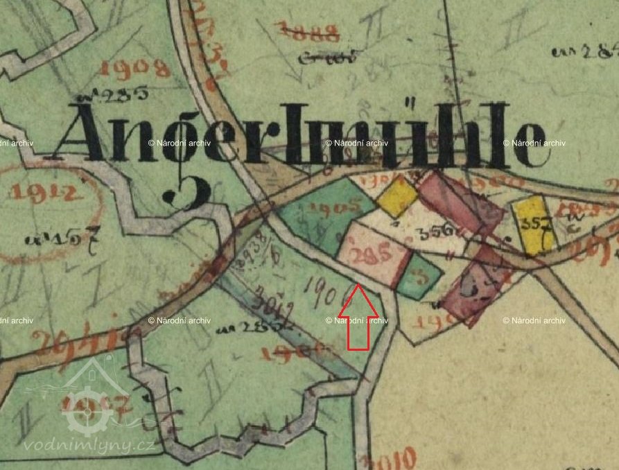 Koncem 17. století provozoval mlýn mlynář Mathes Angerl s manželkou Elisabethou. V květnu 1697 se jim zde narodila dcera Apollonia. Mlýn předal svému synovi Adalbertovi Angerl. Adalbertova manželka se jmenovala Dorothea, postupně se jim zde narodily děti Georg Adalbert Pius (1710), Regina Cordula (1712), Ferdinand Zikmund (1717), Apollonia Lucia (1727), Johann Thomas (1730).