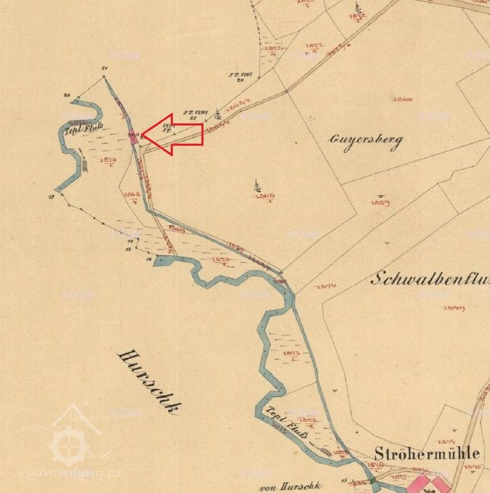 V roce 1871 je na tomto mlýně uváděn Josef Martin s manželkou Karolinou, rozenou Frisch. Dle údajů v matrice byl synem zemřelého mlynáře Johann Martina z Teplé, tedy mlynáře z Obere Ströhermühle čp. 286. Tomu nasvědčuje i pojmenování obou mlýnů Obere a Untere Ströhermühle. Manželům Josefovi a Karolině se zde 22. 4. 1871 narodil syn Karl.