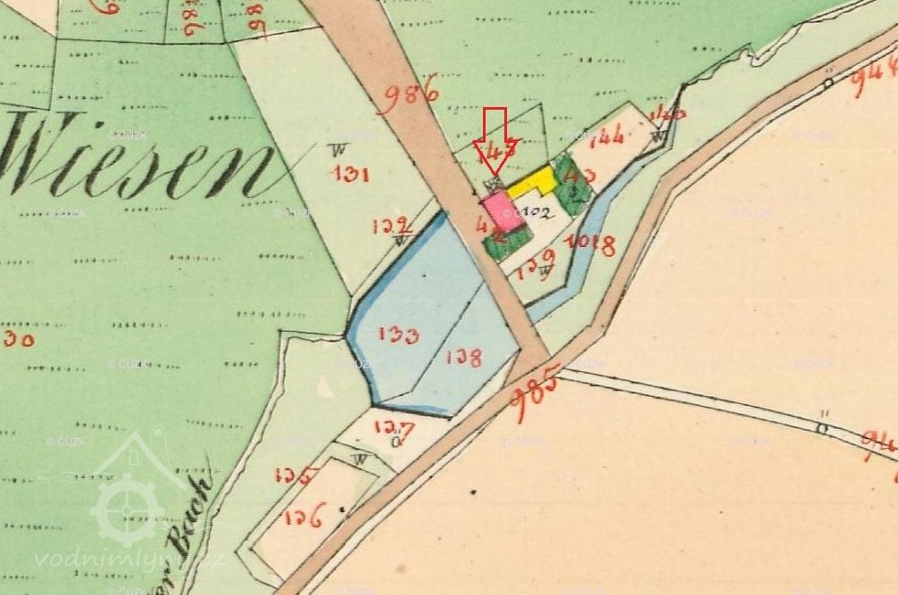 V seznamu vodní děl z roku 1930 zde byl uváděn Alfréd Tschada, objekt byl registrován jako mlýn a pila.