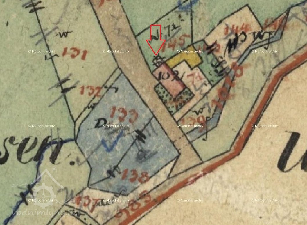 Ve stabilním katastru je v roce 1838 na mlýně čp. 71 uváděn Johann Teinert.