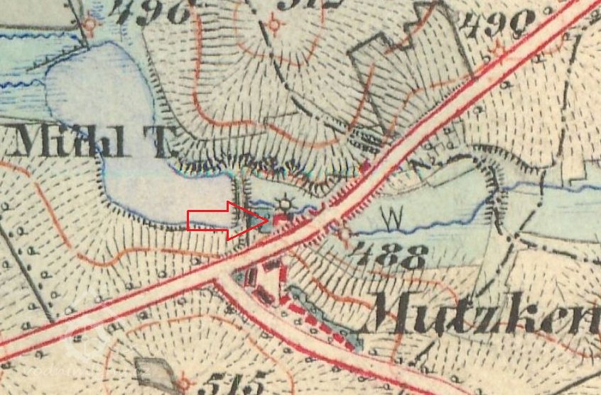 Při sčítání v roce 1880 byl mlýn rozdělen na 3 byty. V prvním bytě bydlel Andreas Günter s manželkou Annou, která byla vdovou po mlynáři Andreasu Kreinerovi, synem Josefem a dcerou Marií, a dále zde s nimi žili dcery zemřelého mlynáře Andrease Keinera Marie, Anna, Katharina a Margaretha. Josef Günter nebyl mlynář, ale sedlák, proto mlýn neprovozoval. Provoz mlýna přenechal Georgu Trägerovi, který bydlel v druhém bytě s matkou Susanou. Na třetím bytě byl evidován bratr Georga Trägera Wenzl Träger, který se živil jako vrchnostenský parkový zahradník v Boru a při mlýně měl hospodářství. Dále zde byla zapsána manželka Theresie a děti Anna, Franz a Josef. Tato rodina však pravděpodobně bydlela v Boru. V hospodářsví mlýna byl 1 valach, 2 krávy, 2 jalovice, 2 voli a 4 prasata.