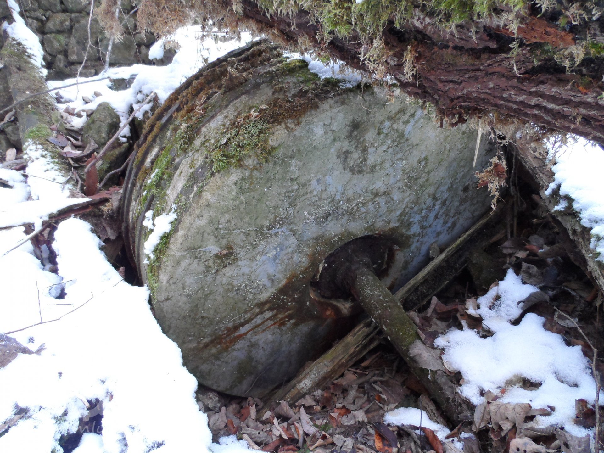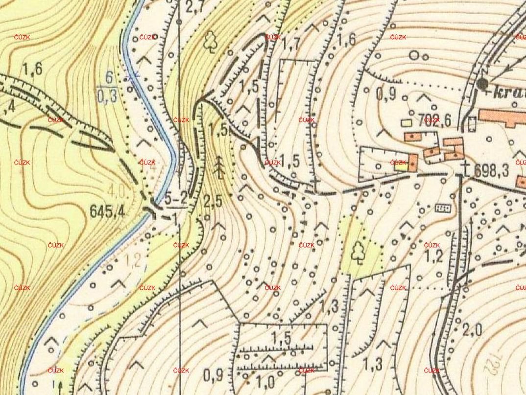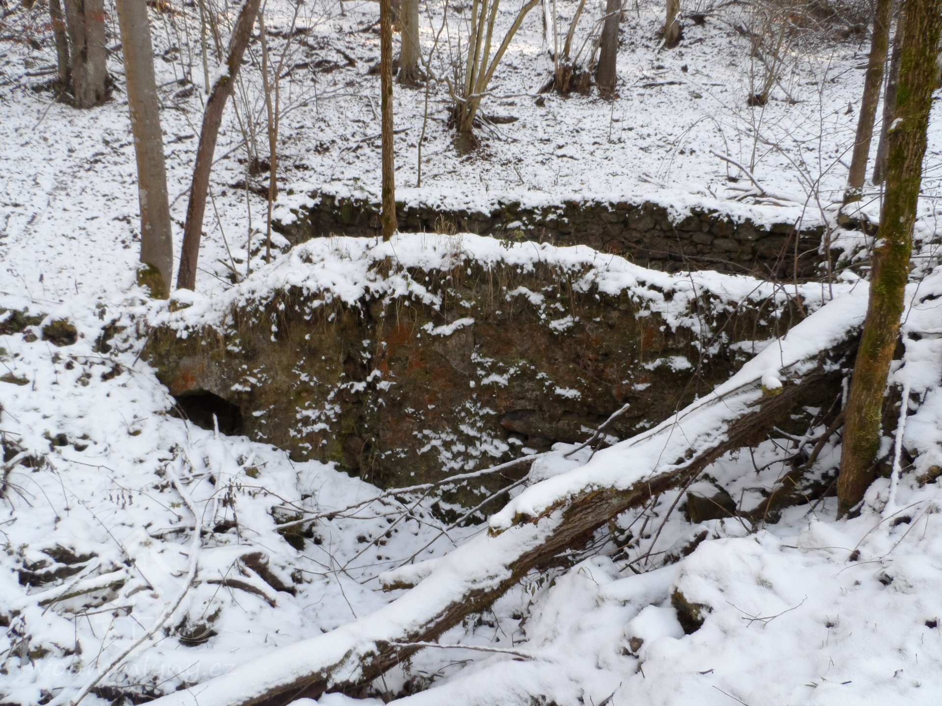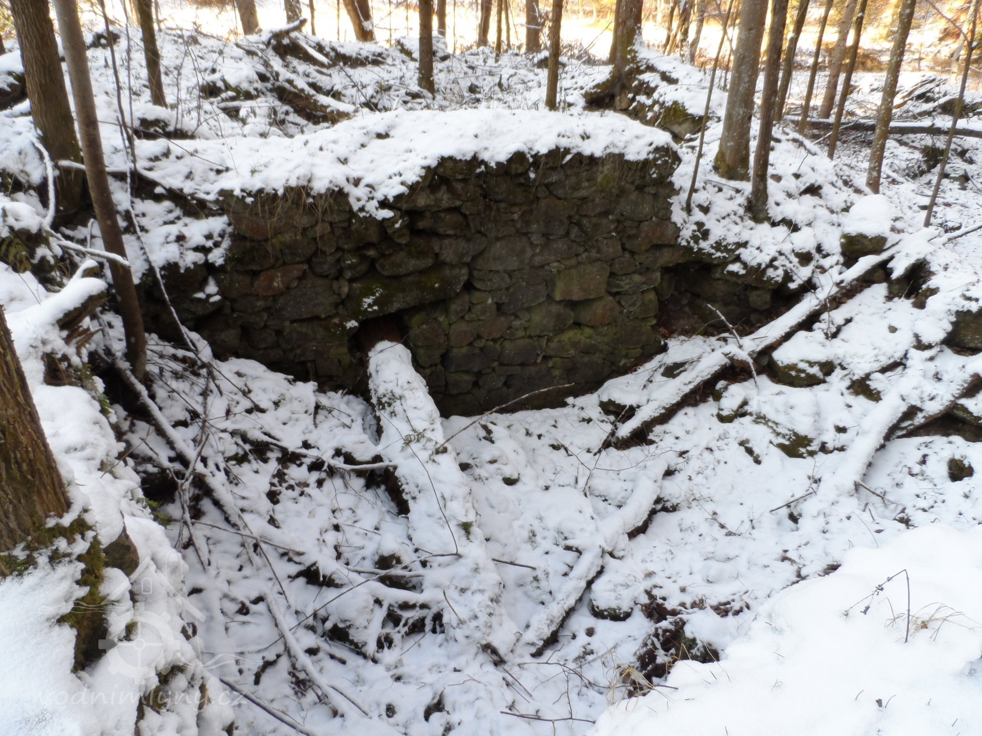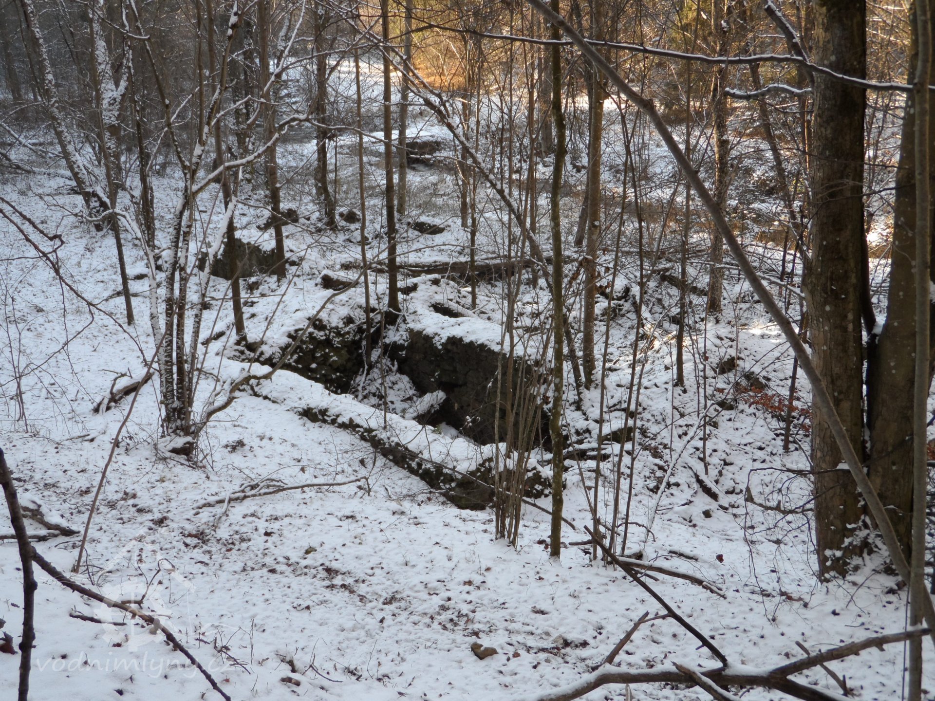 Zaniklý mlýn s pilou se třemi koly na svrchní vodu.