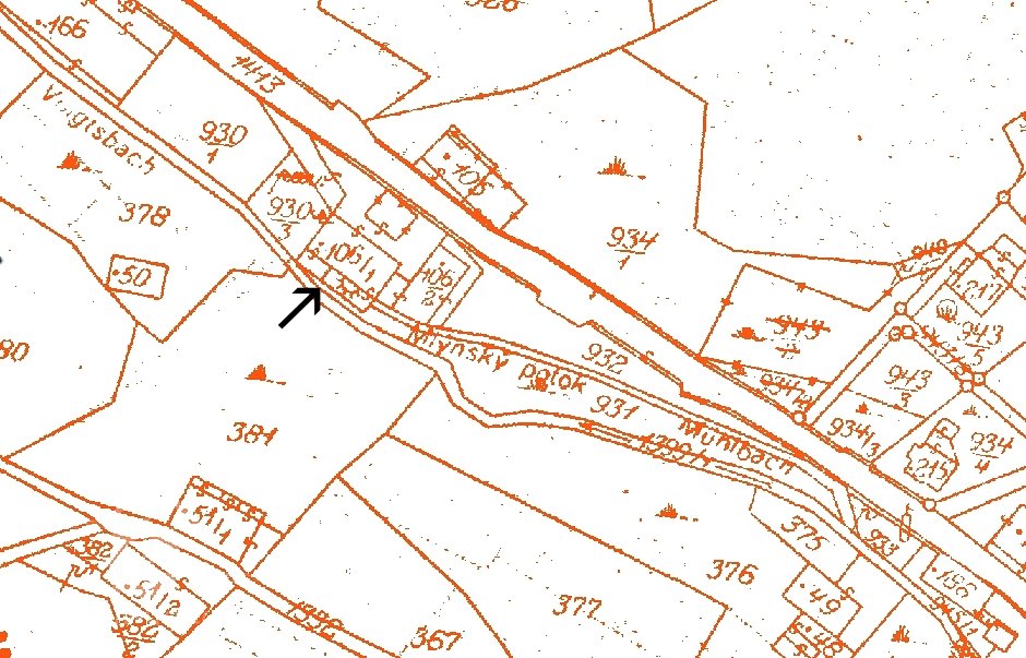 Mapa pozemkového katastru + ortomapa, do 1950, © cirkevni-restituce.cuzk.cz