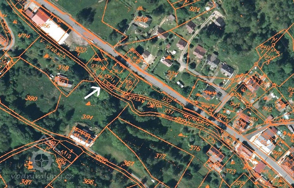 Pohled do míst zaniklého mlýna, 2014, © mapy.cz