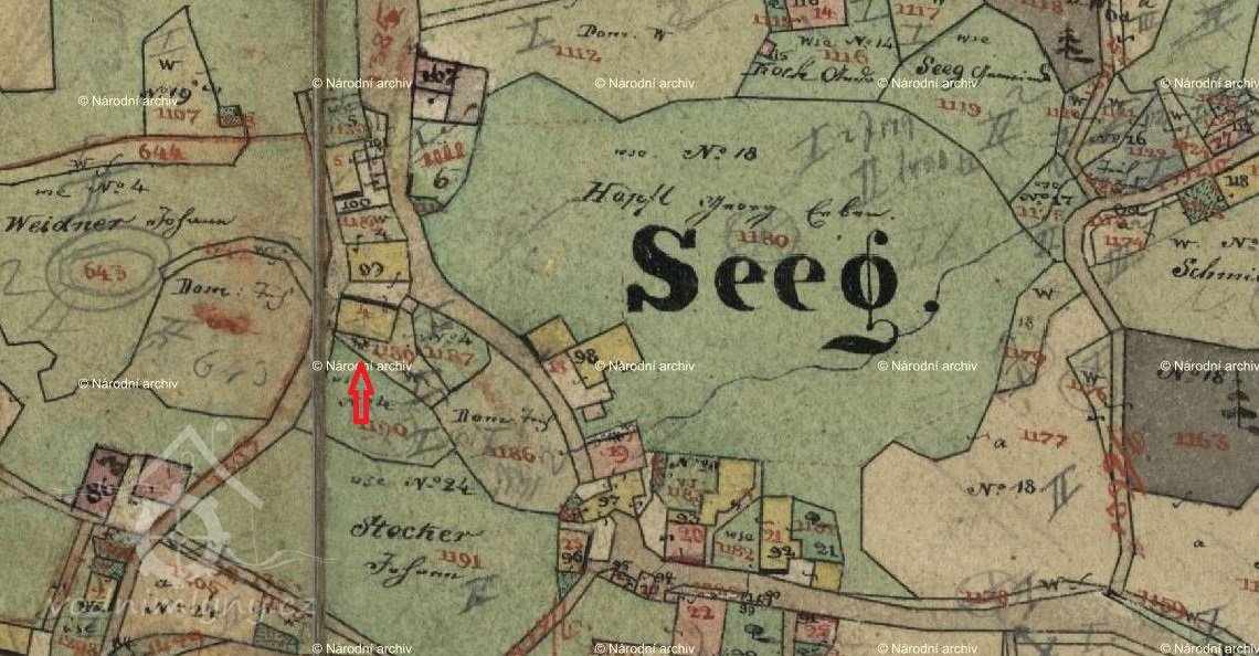 Císařský povinný otisk, výřez, 1840, © archivnimapy.cuzk.cz