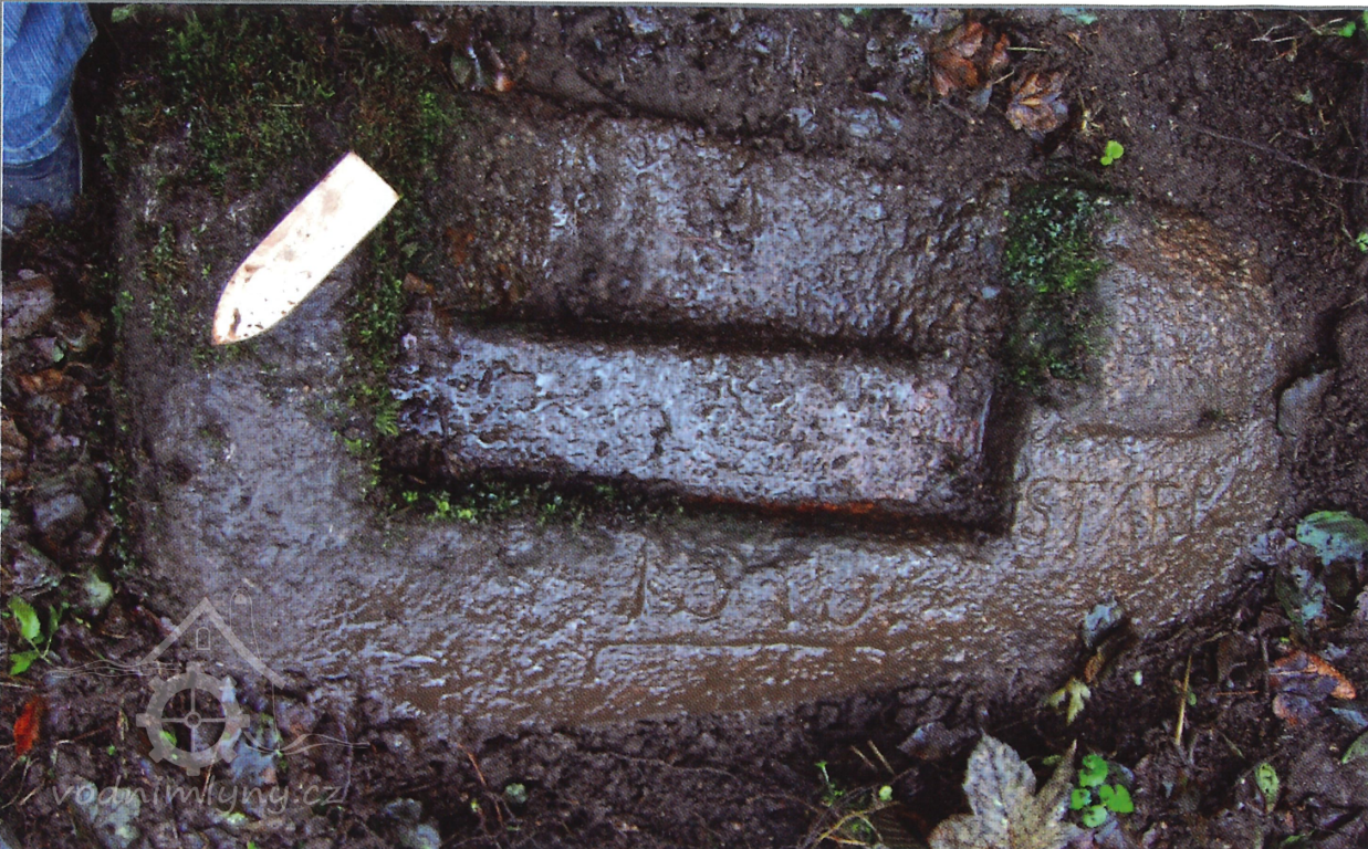 Dolní kamenné ložisko vodního kola s nápisem STARK 1915, 2009, © Luděk Jaša, (Prvky na obrázku: Vodní kolo)