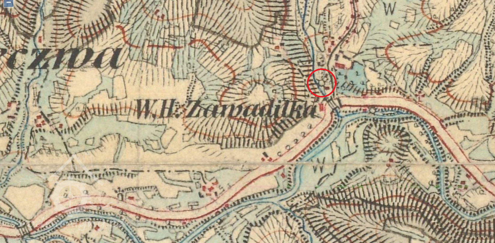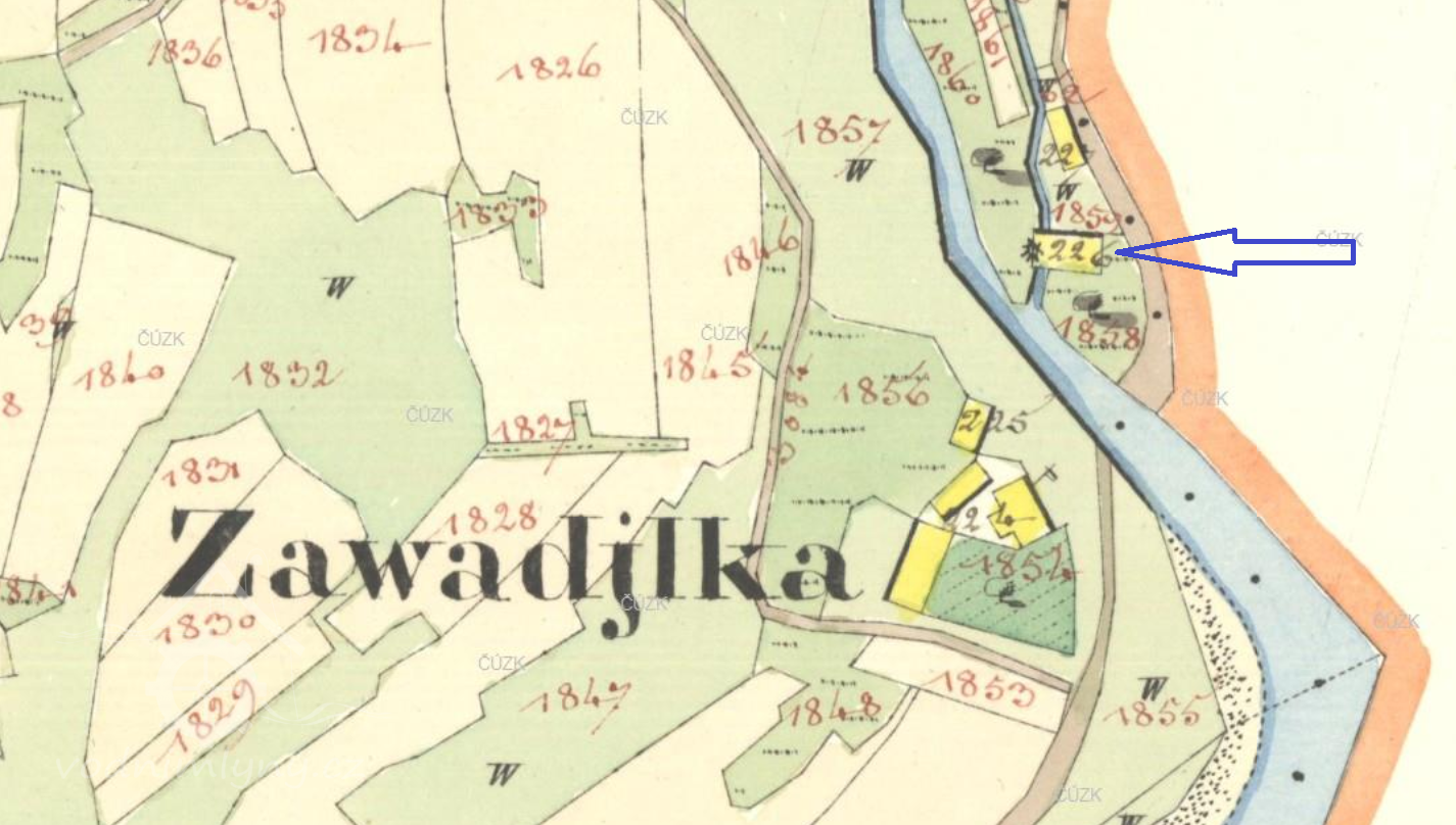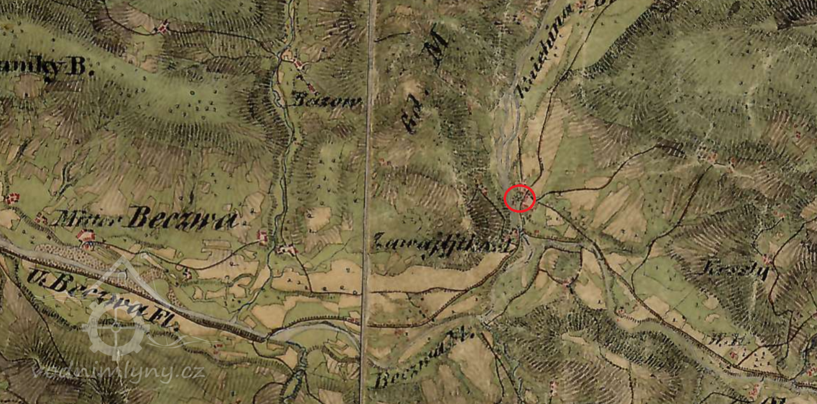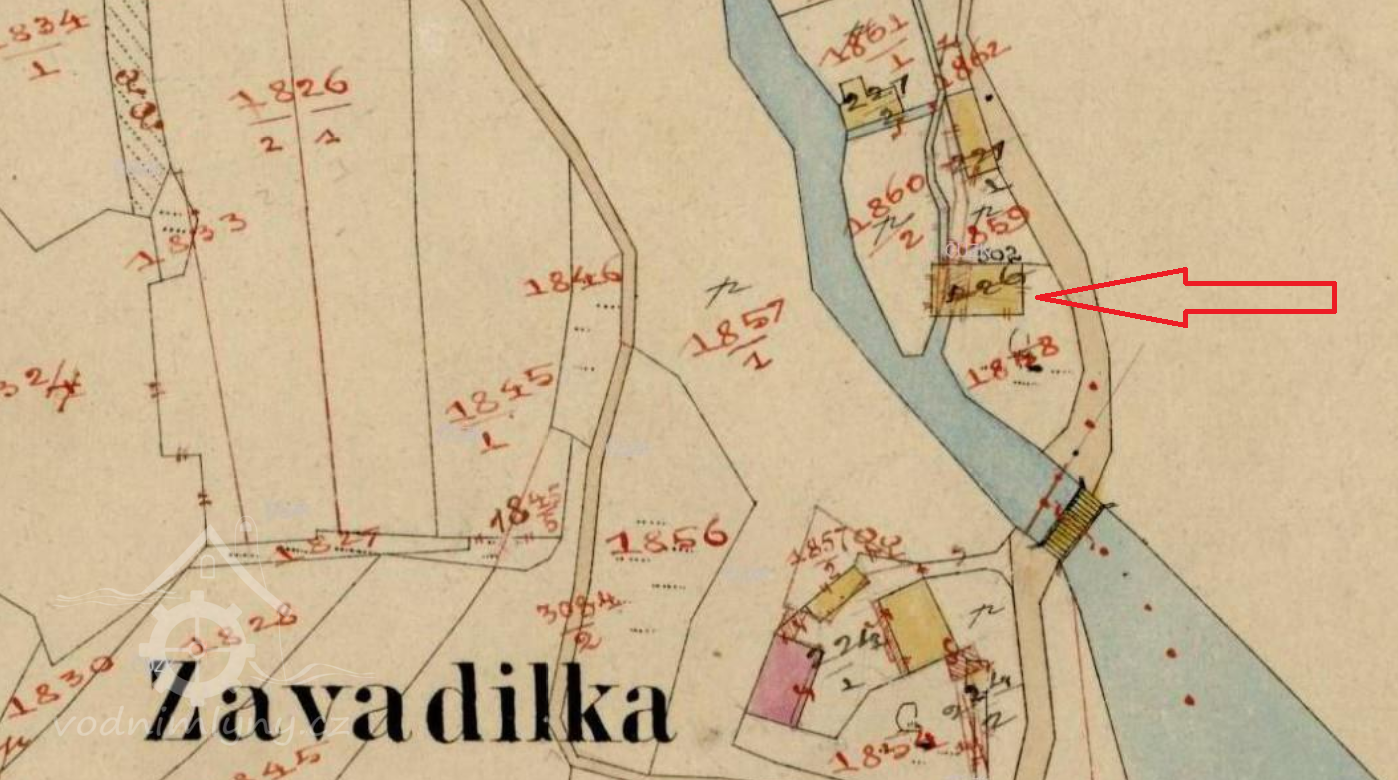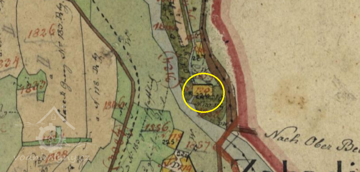Z indikační skici i povinného císařského otisku lze odhalit mlýnský náhon na říčce Kněhyni, u Zavadilky, těsně předtím, než se Kněhyně vlévá do Bečvy. Na indikační skice je patrný mlýnský náhon, odpojující se od Kněhyně a pak do ní zase ústící. Je to č. 120 ( bývalé č. 91 ).