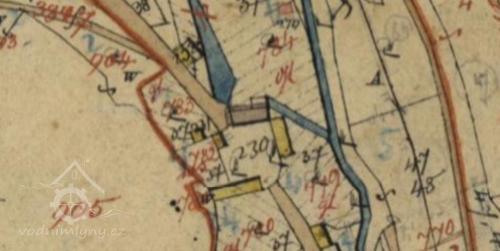 Velký spád potoka umožnil vybudování celé kaskády mlýnů, které nefungovaly současně a byly postaveny na 6 místech. První se nacházel pod skálou Čertovica, ta však již neexistuje. Ještě dnes ale můžeme v těchto místech vystopovat přívod vody a zástavu. V knize Luhačovické Zálesí se uvádí, že v roce 1663 byl ve Slopném při turecko-tatarském vpádu vypálen mlýn. Při kopání základů domku č. 28 se toto potvrdilo. Mlýn pod vesnicí disponoval největším zdrojem vody po zapojení přívodu ze splavu Pod břehy. U mlýna vznikla později i pila. Předchůdce dnešního funkčního mlýna, malý vodní mlýn, byl ještě kolem roku 1913 ve společném vlastnictví majitelů domů č. 8 (Kozubík) a č. 87 (Machů).