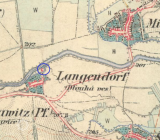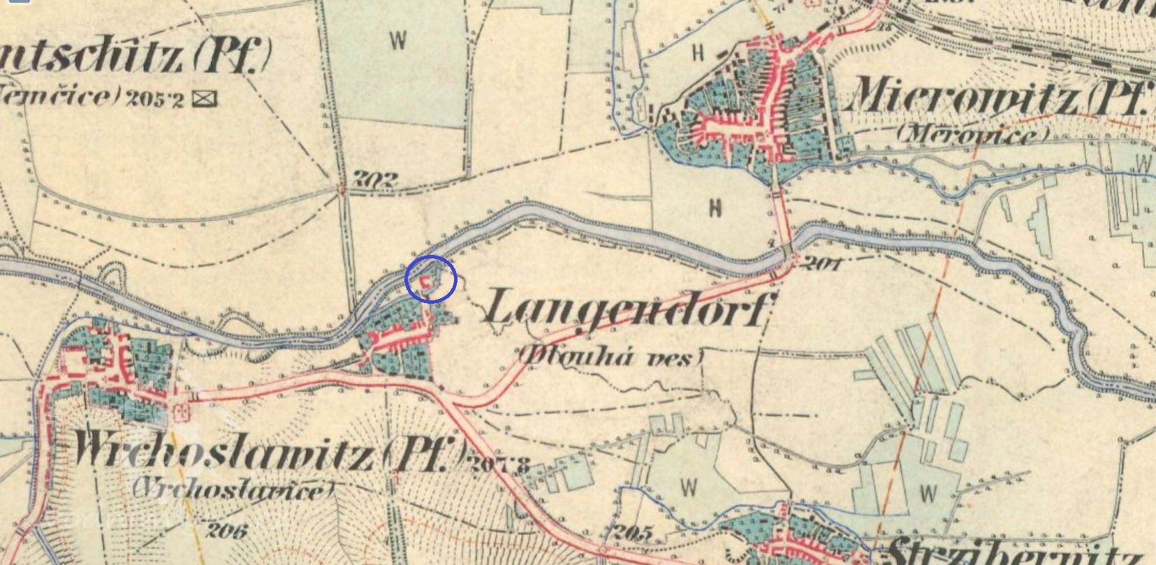 První zmínka o mlýně v Dlouhé Vsi je z roku 1353, kdy je uváděn jako panský mlýn spolu s krčmou, tvrzí a 4 chalupami, domkem hlídače rybníka a jedním třičtvrtělánem, tedy větší zemědělskou usedlostí. O existenci mlýna je doklad z roku 1466 v souvislosti s místním splavem.