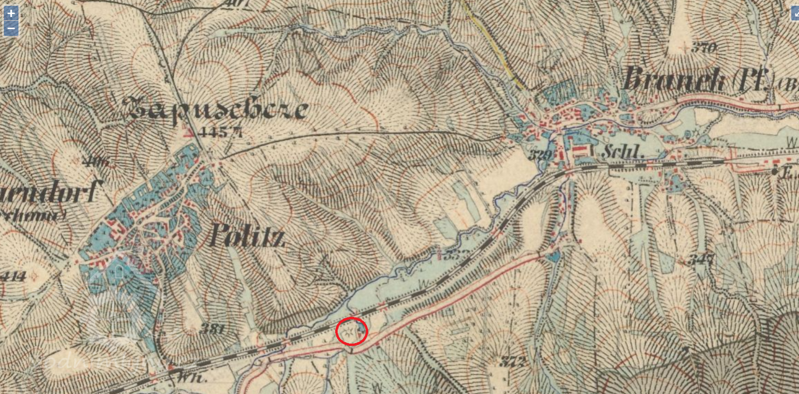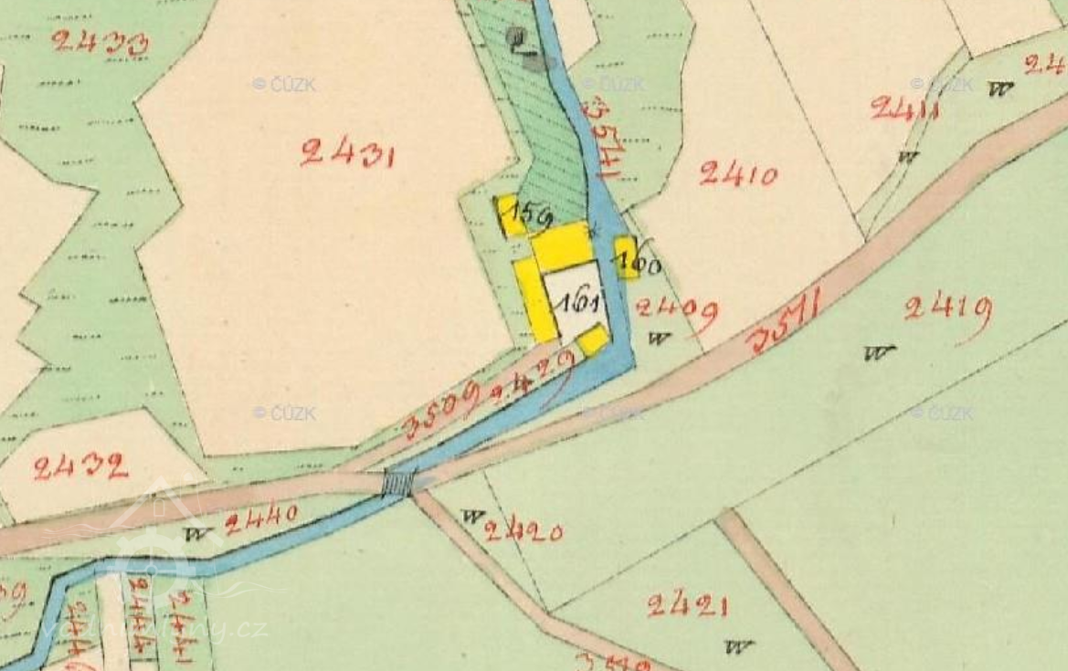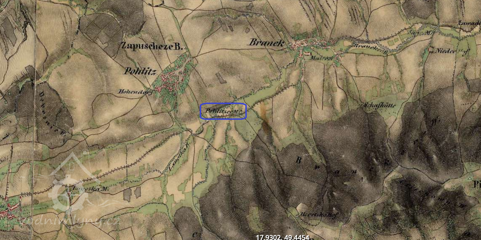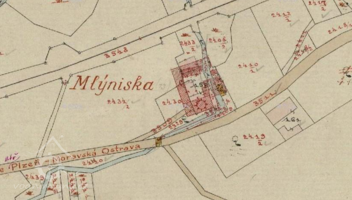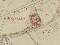 Areál mlýna postupně demolovaný, v roce 1971 ještě kompletní.